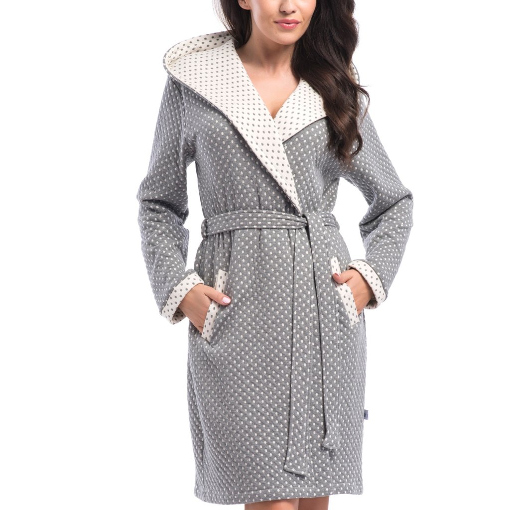 Klasický, teplý a útulný župan z měkké pleteniny. Pohodlný střih na zavazování s kapucí a bočními kapsami. Dlouhé rukávy. K dispozici v zajímavé barevné kombinaci. Ideální pro chladné podzimní večery.Složení: 50% bavlna, 50% polyester.
