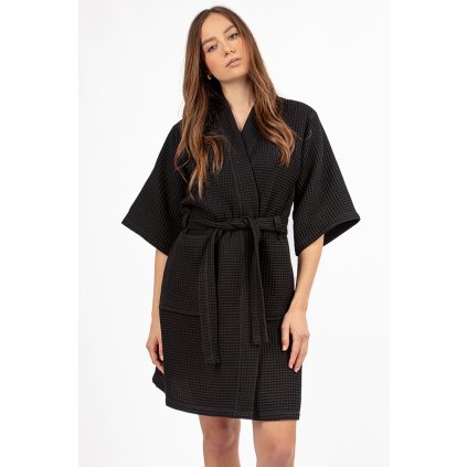 Velmi lehký dámský župan Hamana Virginia s 3/4 rukávem. Župan v nádherné korálové barvě je vyroben z velmi příjemného a kvalitního materiálu. Délka županu je do poloviny stehen. Tříčtvrteční rukávy a spodní lem zdobí nádherná krajka s květinovým vzorem v černé barvě. Zavazování v pase na pásek. Materiálové složení: 94% viskóza, 6% elastan.Doplňkové parametry