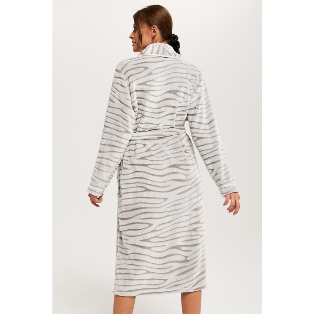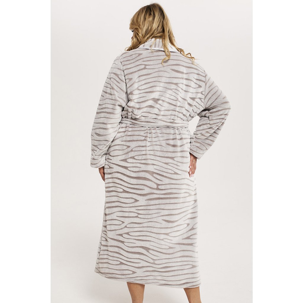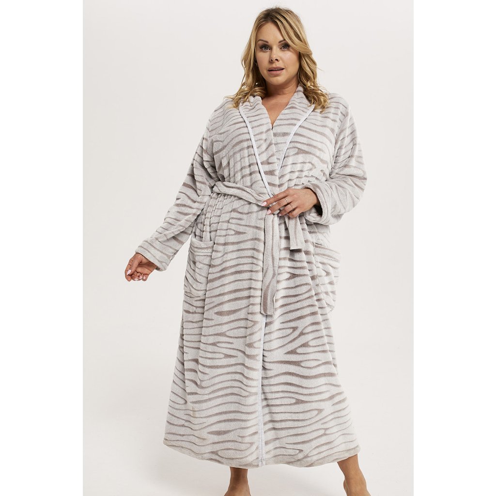 Teplý a útulný župan Asma je perfektním řešením pro chladnější večery. - klasický střih - Dlouhý rukáv - módní zvířecí potisk zebry - hřejivý a měkký fleece - příjemný na dotek - praktické kapsy - zavazování v pase Složení: 100% polyester