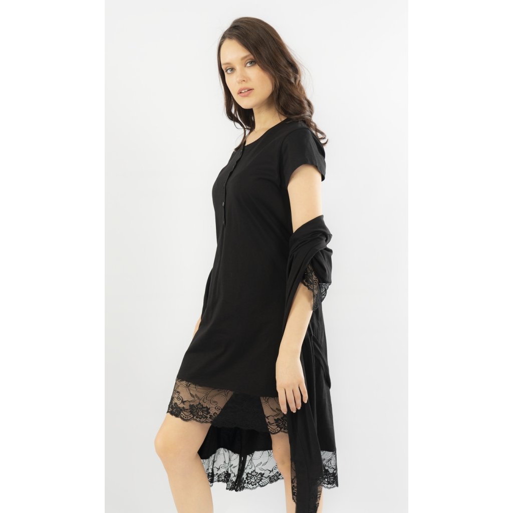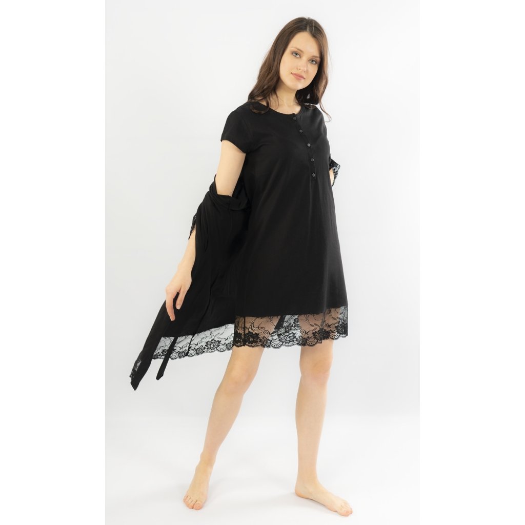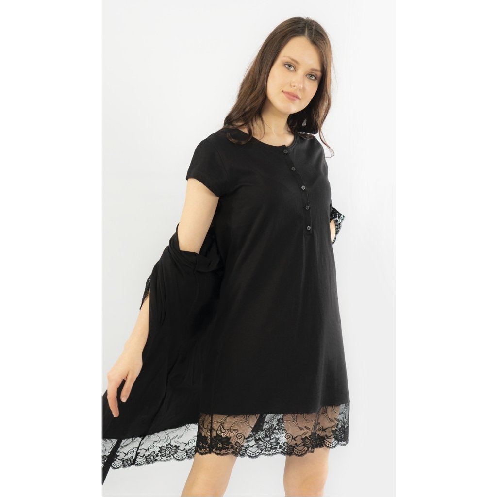 Dámský bavlněný župan s noční košilí Adéla. Pohodlný a přitom sexy komplet se skládá z noční košile a župánku. Košile má légu rozepínací na knoflíky a je zakončena krajkou. Stejná krajka je použita i na rukávech a spodním lemu županu. Použitý bavlněný materiál je příjemný a poddajný na dotek.