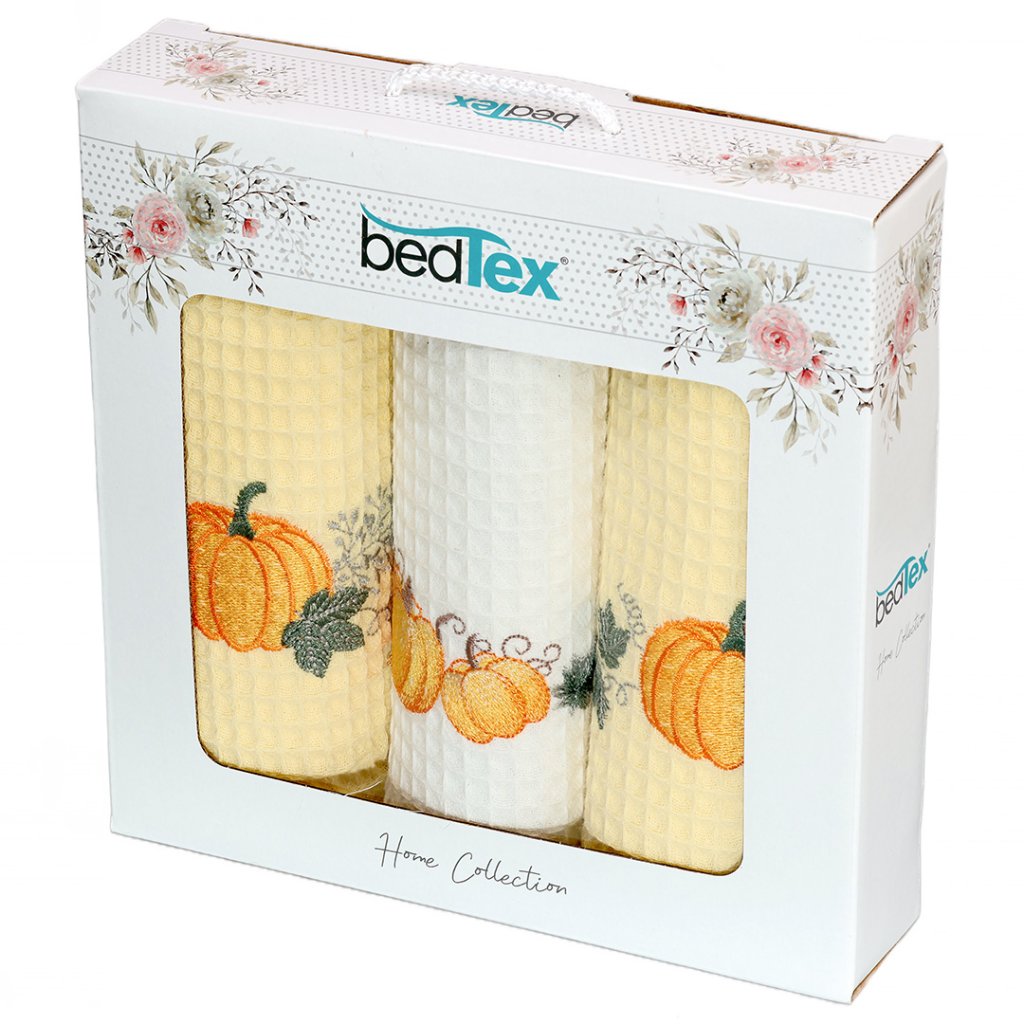 Dárková sada 3 ks vaflových utěrek s vyšitou dýní