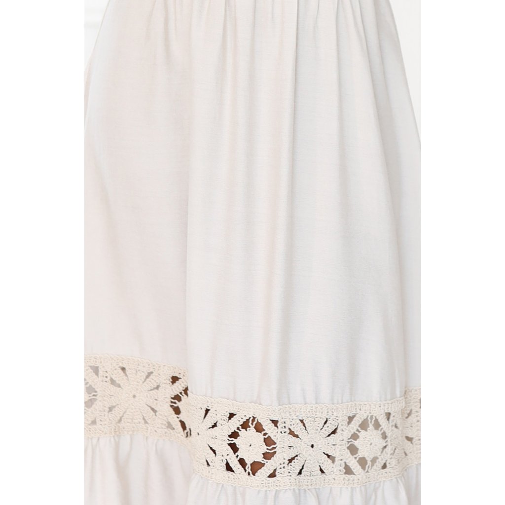 Letní boho midi šaty zdobené ažurovou výšivkou – barva ecru
