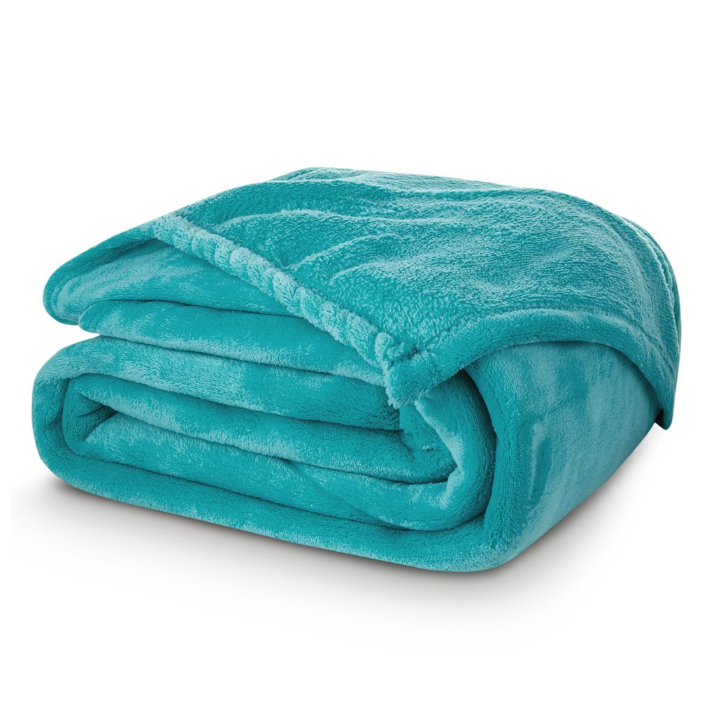 Tyrkysová deka z hřejivého mikroplyše je vyrobena ze 100% polyesteru v rozměru 150x200 cm, s gramáží 300 g/m2