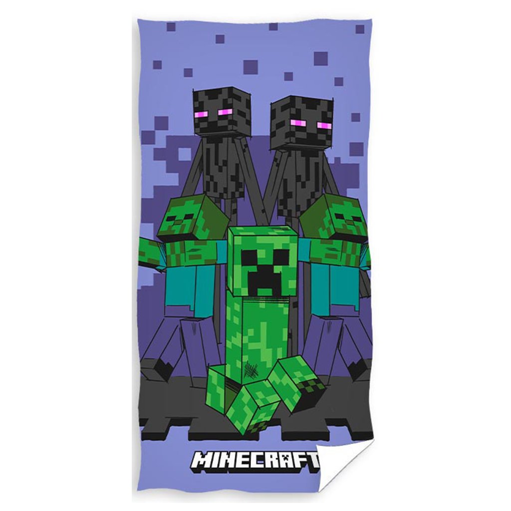Na fialové osušce jsou kostičkované postavičky, pro Minecraft znalé, jsou to Monster Mobs