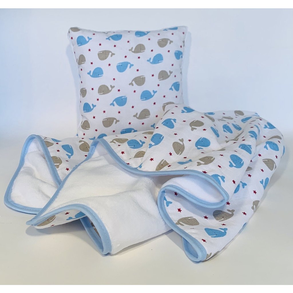 Dětská sada pro batolata Velryba modrá 35x35, 90x100 cm