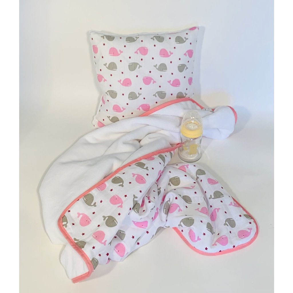 Dětská sada pro batolata Velryba růžová 35x35, 90x100 cm
