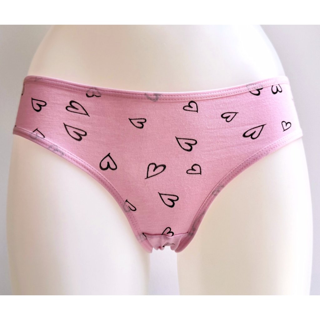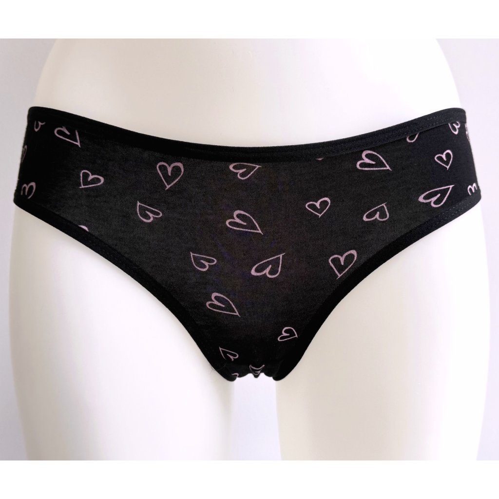 Dámské bavlněné kalhotky Beata. Slušivé klasické kalhotky jsou pohodlným typem spodního prádla pro všechny příležitosti. Jsou zdobené drobnými srdíčky. Obzvláště oceníte materiálové složení - 95% bavlna a 5% elasten. Použitý materiál je příjemný a poddajný na dotek.