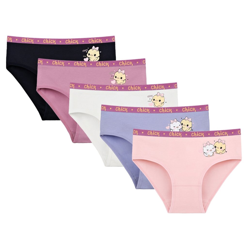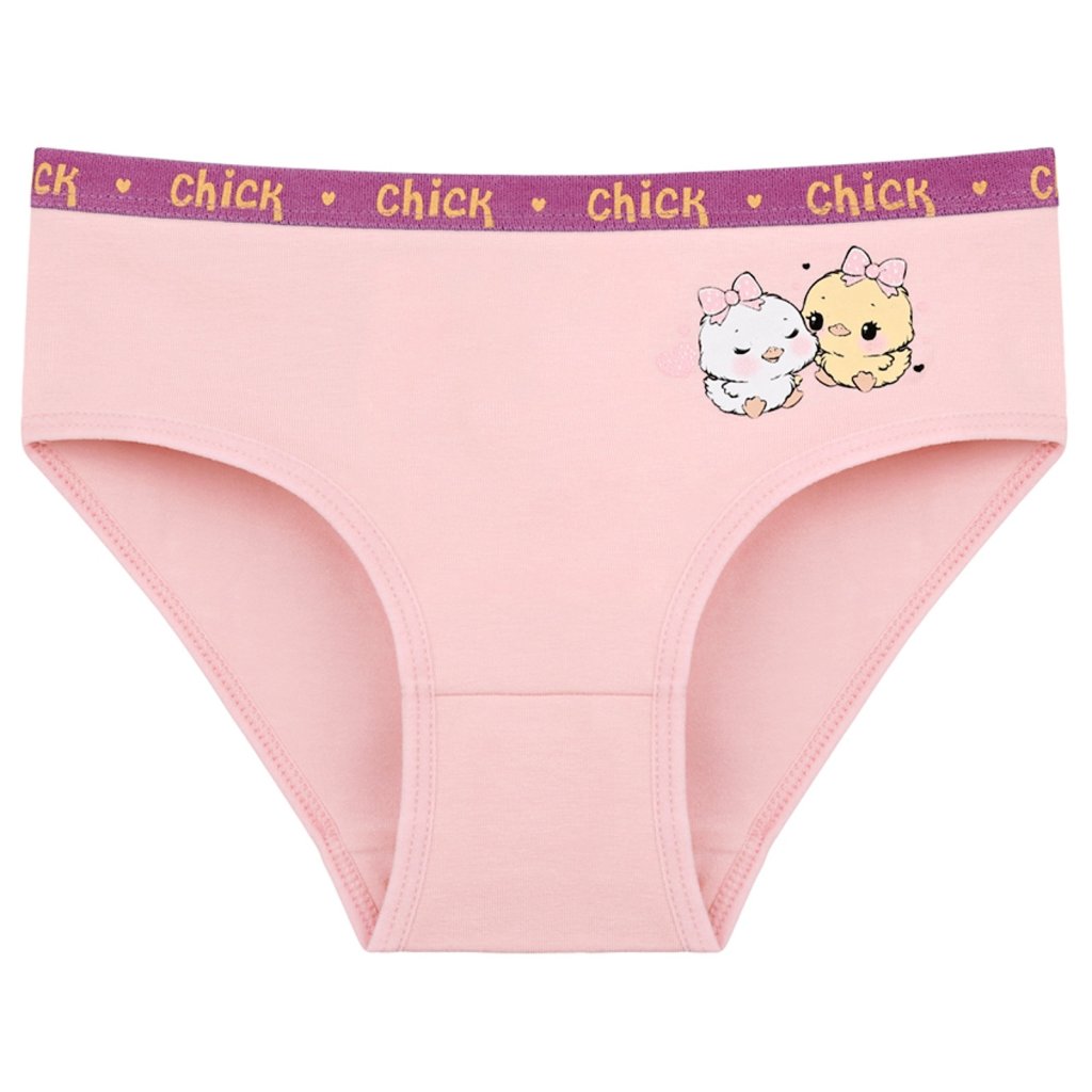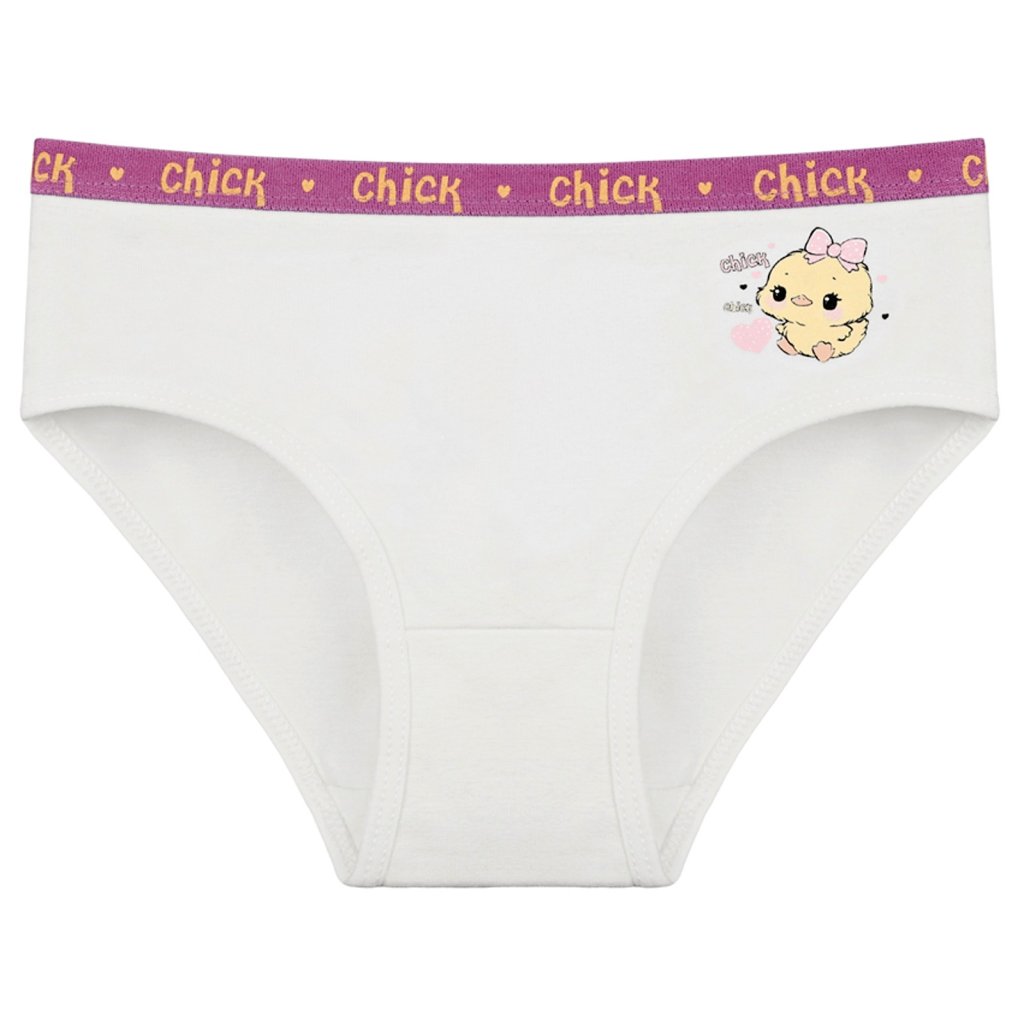 Dětské bavlněné kalhotky Kuře. Dětské kalhotky klasického střihu jsou pohodlné a slušivé, zdobí je obrázek kuřete. Obzvláště oceníte materiálové složení - 95% bavlna a 5% elasten. Použitý materiál je příjemný a poddajný na dotek.