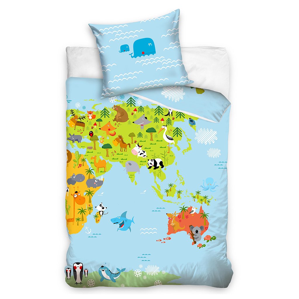 Bavlněné povlečení Mapa Zvířat je vyrobeno ze 100% hladké bavlny renforcé