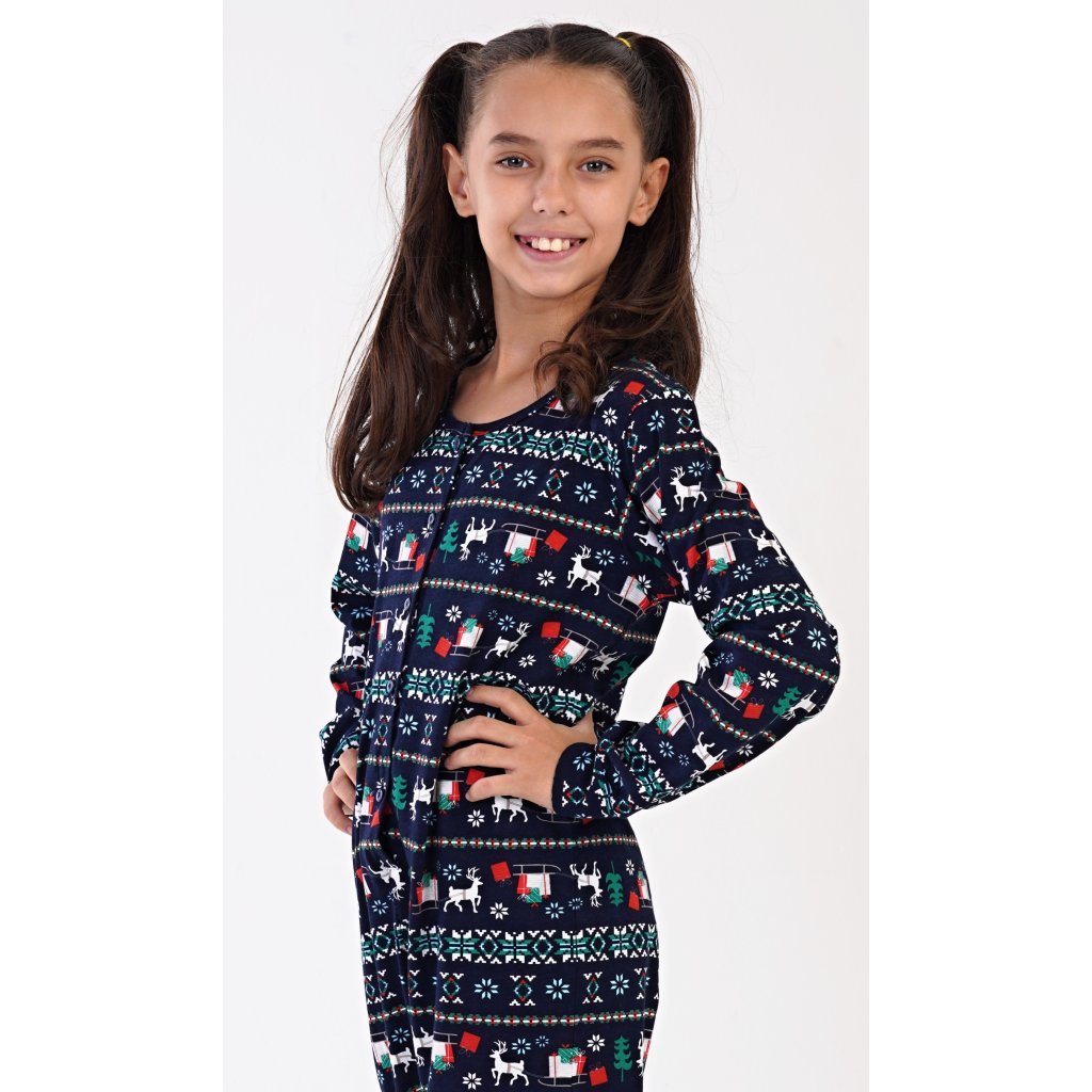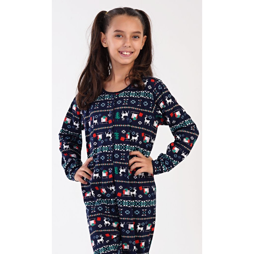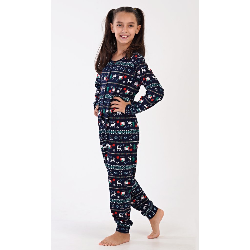Dětský bavlněný overal Merry christmas. Overal je celopropínací, potištěný vánočními motivy. Dlouhé nohavice a rukávy jsou ukončeny lemy. Bavlněný materiál je poddajný a příjemný na dotek.