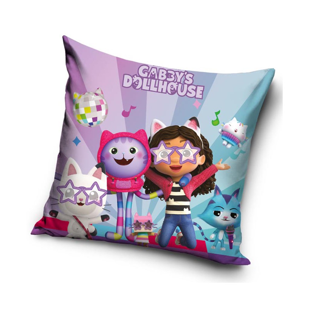 Roztomilý dětský polštářek Gábinin Kouzelný Domek Rozjezdy pro Hvězdy přinese do každého pokojíčku kouzelnou atmosféru oblíbeného seriálu Gabby’s Dollhouse, který milují děti po celém světě