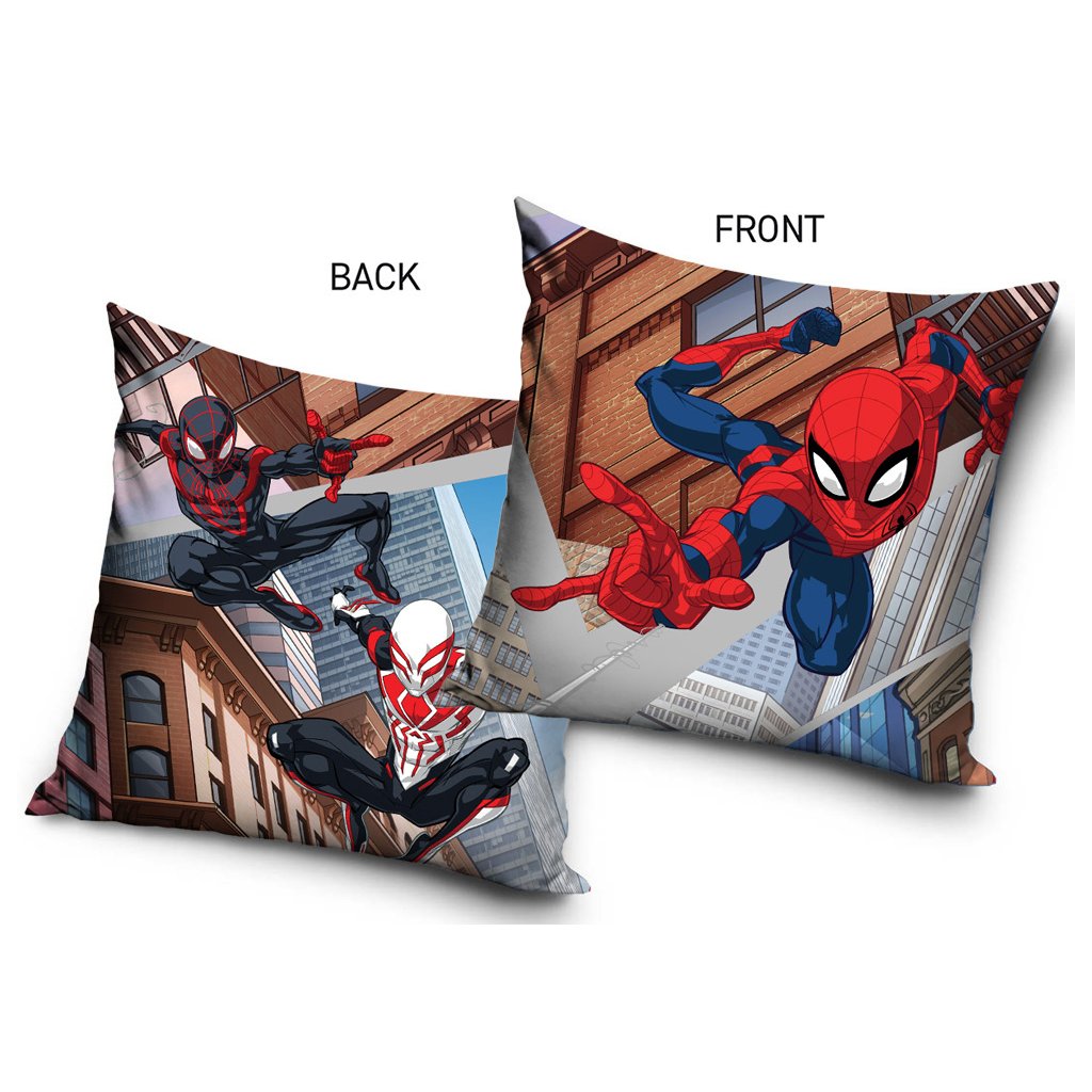 Ulice velkoměsta, pavučiny ve vzduchu a superhrdinové v plné akci – povlak na polštářek Spider-Man Pavoučí město přináší napínavou atmosféru světa Marvel přímo do dětského pokoje