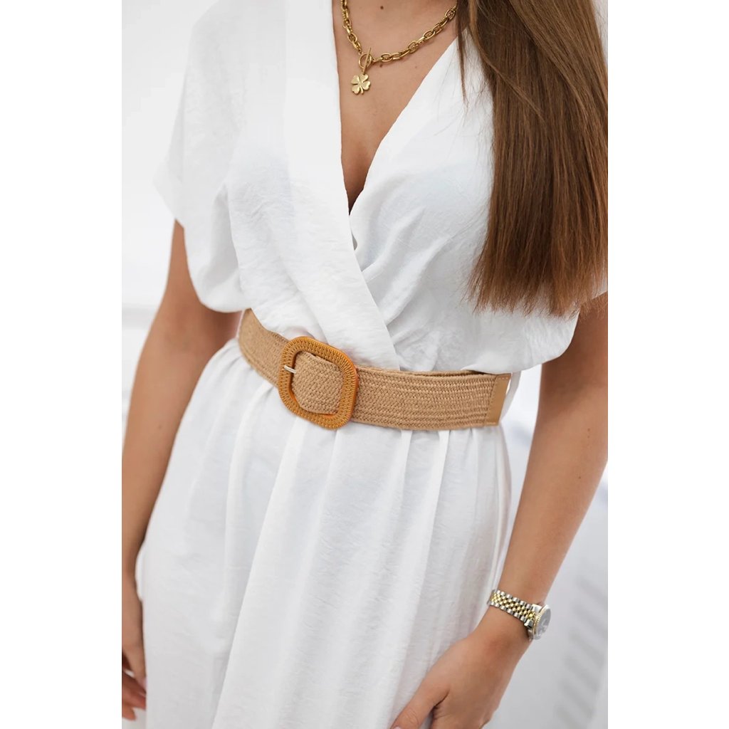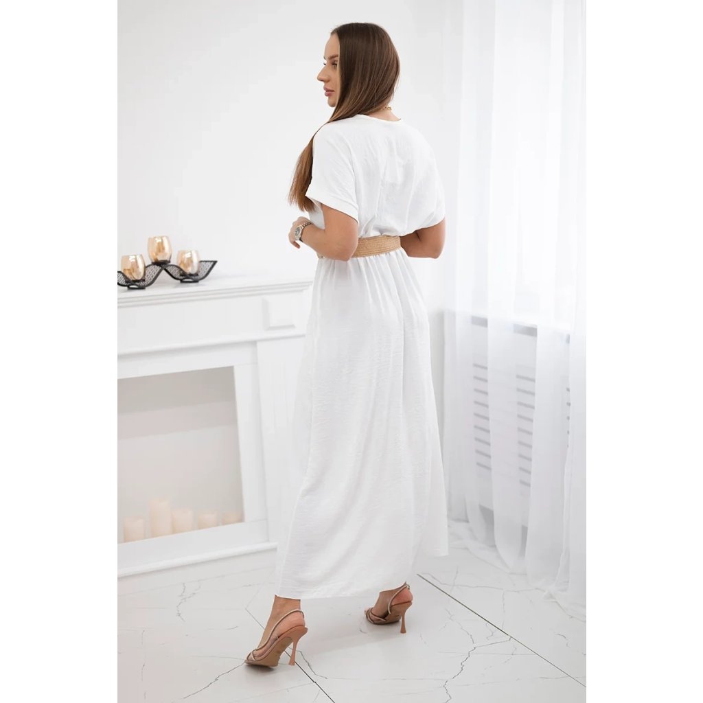 Představujeme vám pohodlné šaty s ozdobným páskem. Šaty mají dole rozparky. Šaty jsou vyrobeny z vysoce kvalitního materiálu. Velmi zajímavá nabídka pro všechny dámy. Velikost je univerzální a vyhovuje dámám, které nosí velikost S, M nebo L.