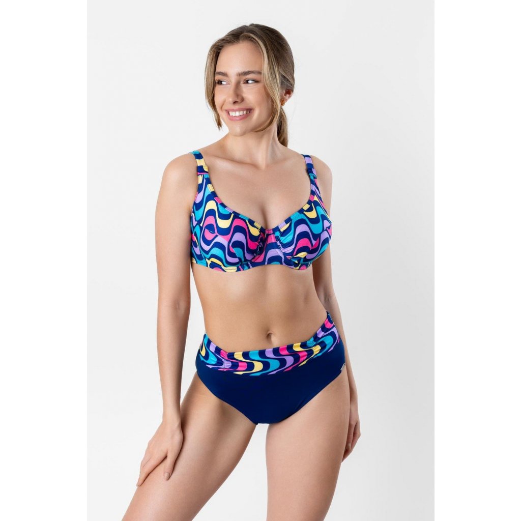 Tento model dvojdílných plavek je velmi zajímavý a vyhledávaný díky opravdu vysokým kalhotkám do pasu a řasením podprsenky, které skryje i drobnou asymetrii prsou.