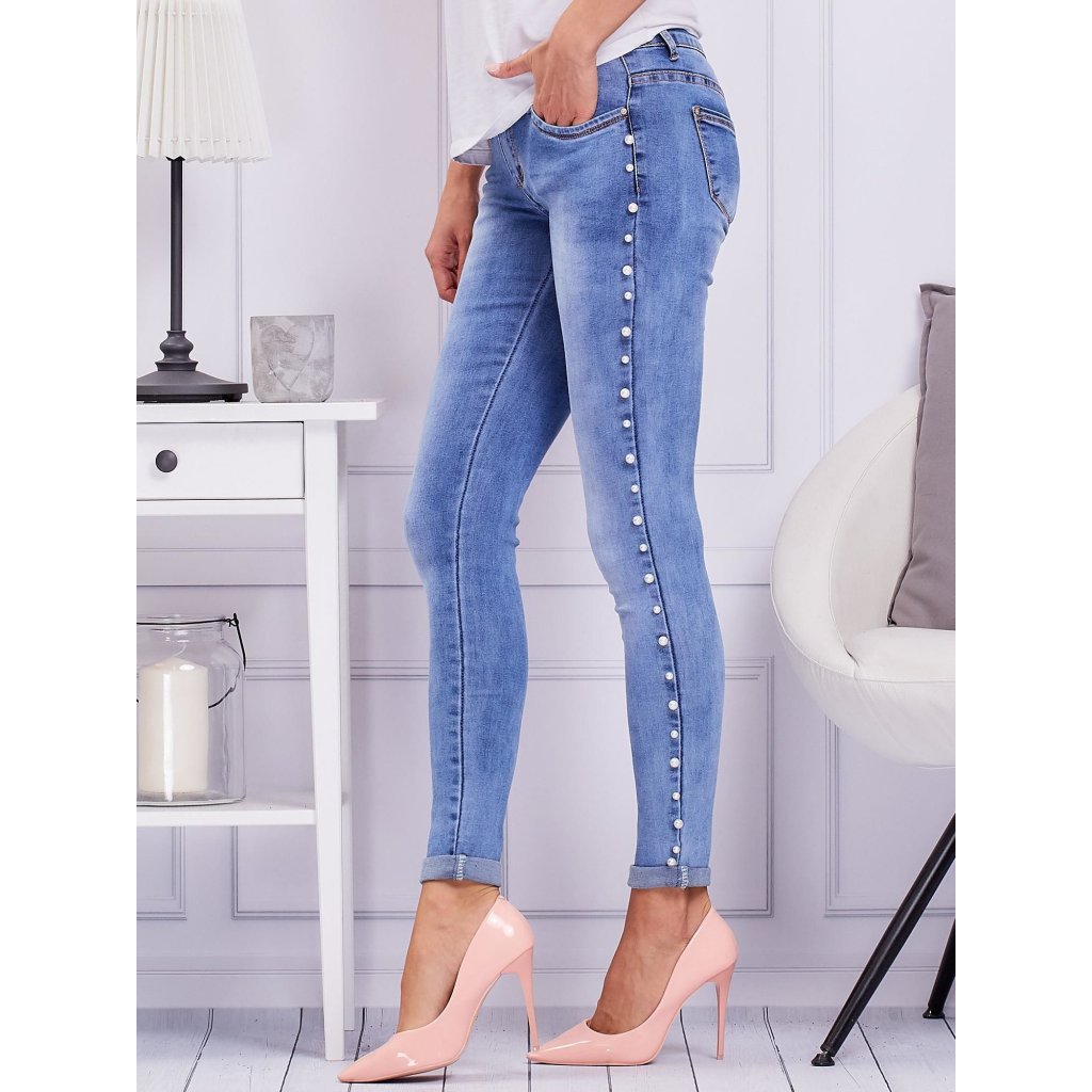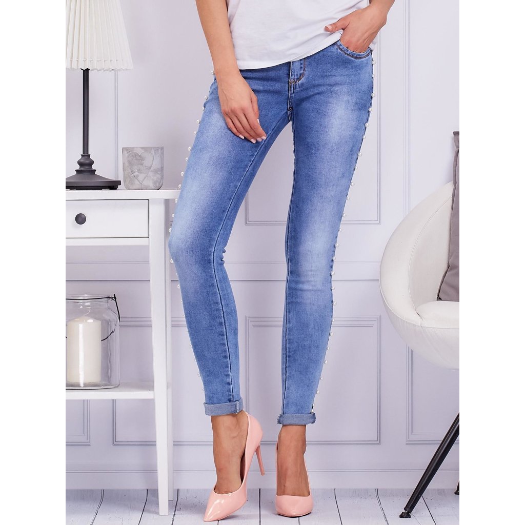 Modré džíny s perlami po stranách nohavicnohavice: rovná