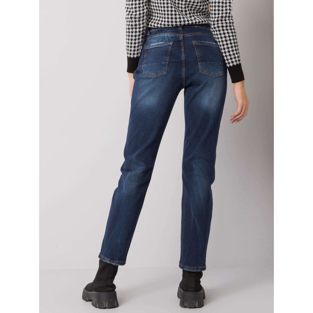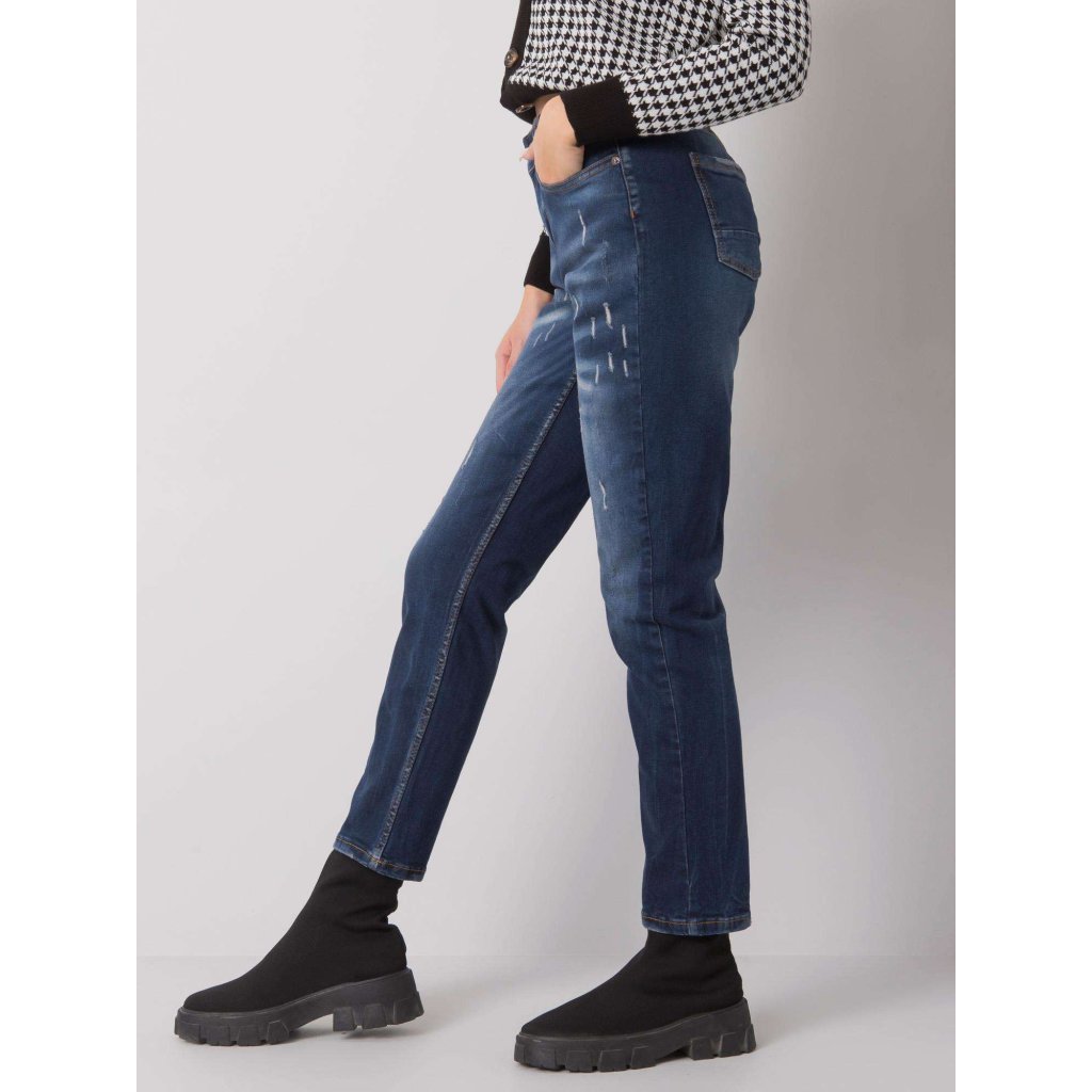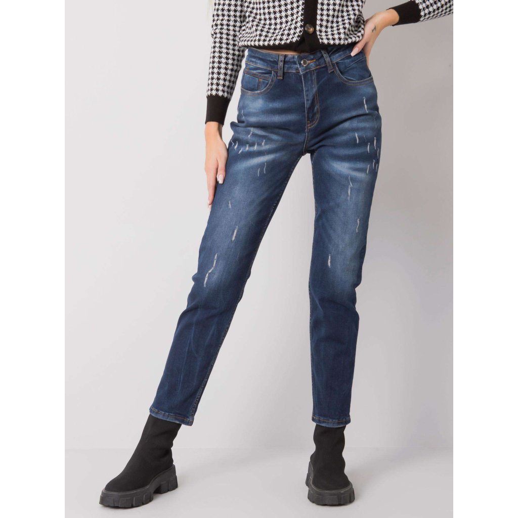 Tmavě modré rovné džíny s trhanými díly.složení materiálu: 98% bavlna, 2% elastan