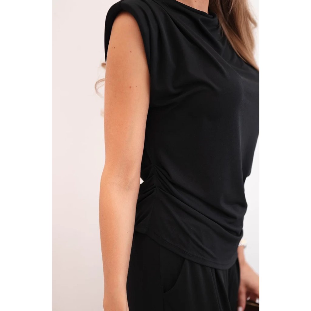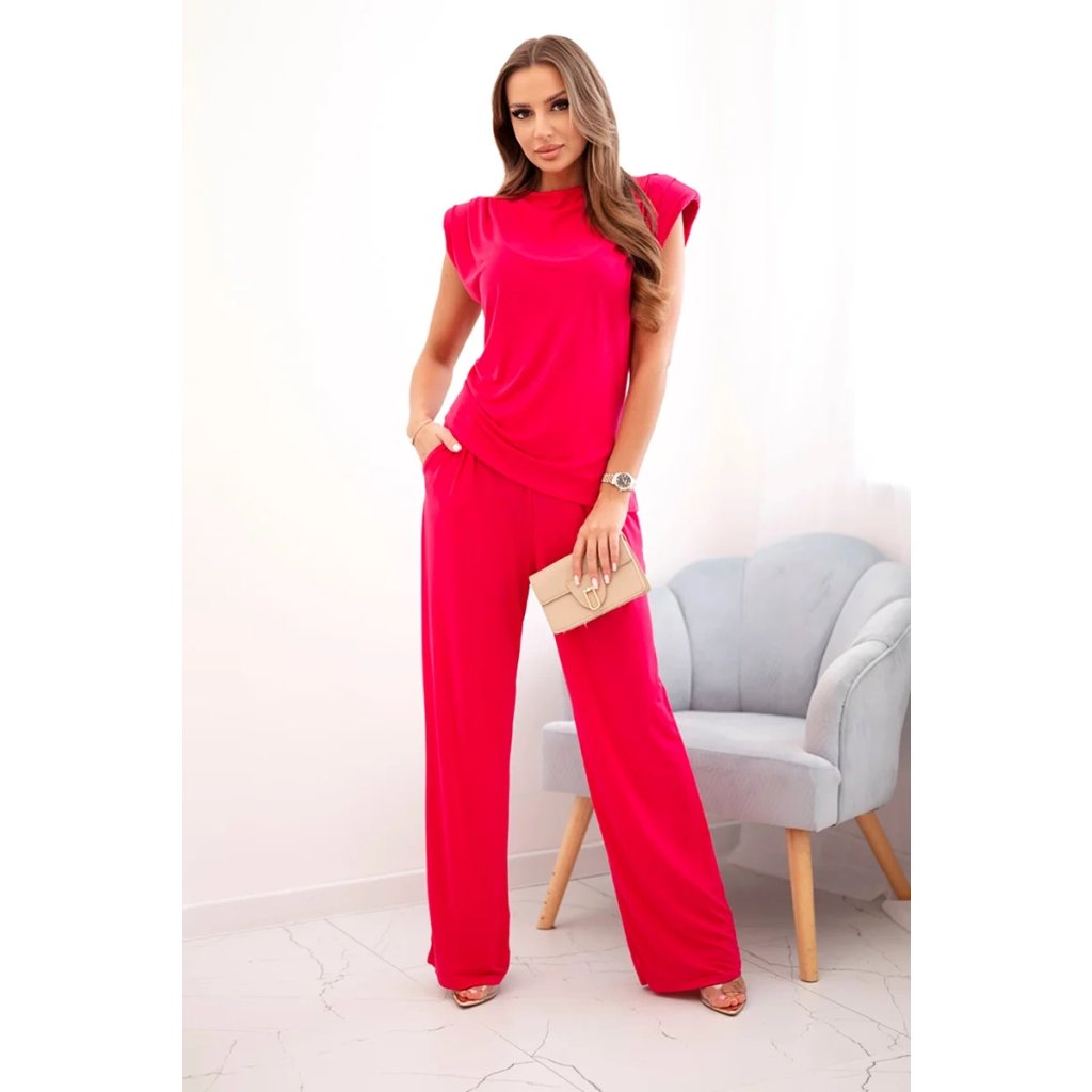 Stylový dámský komplet je ideální volbou pro ženy, které oceňují eleganci a pohodlí. Sada se skládá z volné halenky s jemným řasením na boku a kalhot se širokými nohavicemi, které krásně sedí na postavě. Vyrobený z lehkého a příjemného materiálu, poskytuje pohodlí po celý den. Díky elastickému pasu se kalhoty dokonale přizpůsobí postavě. Skvělá volba pro elegantní výlety, setkání nebo každodenní styling. Velikost je univerzální a bude vhodná pro ženy velikosti S, M nebo L.