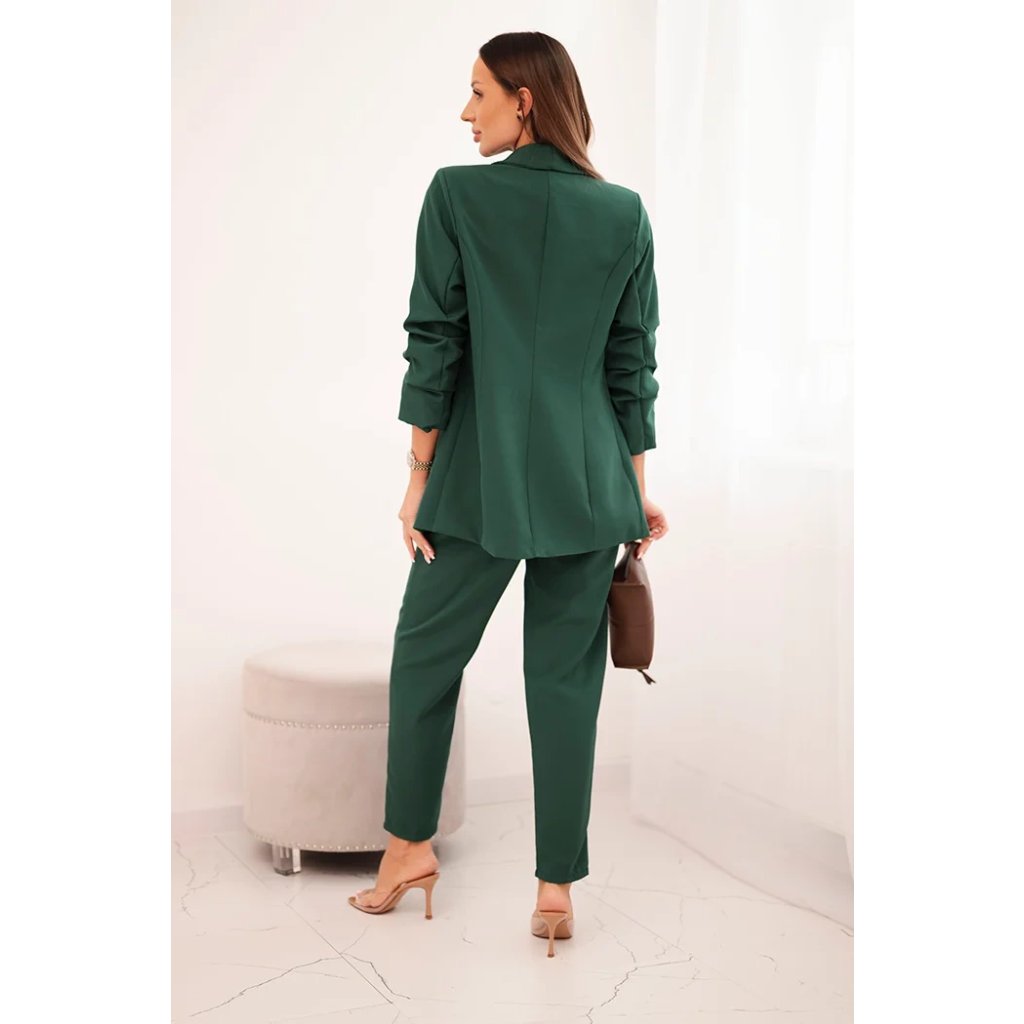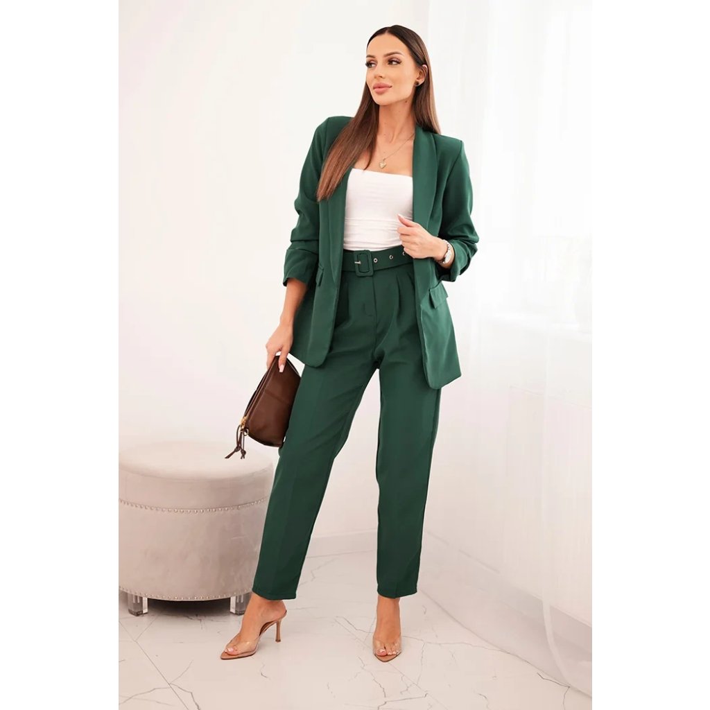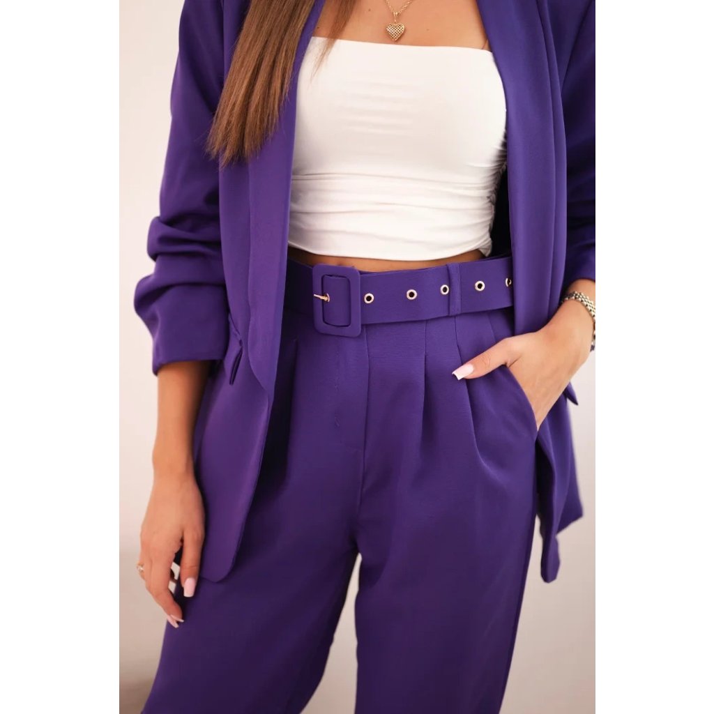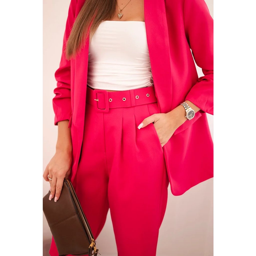Představujeme vám elegantní sadu saka a kalhot. Bunda bez knoflíků s předními klopami. Bunda má podšívku. Kalhoty s kapsami a páskem. Pružný pásek všitý do pasu kalhot na zadní straně. Velmi módní a stylová sada. Sada je vyrobena z vysoce kvalitního materiálu. Velikost je univerzální a vyhovuje dámám velikosti S, M nebo L.