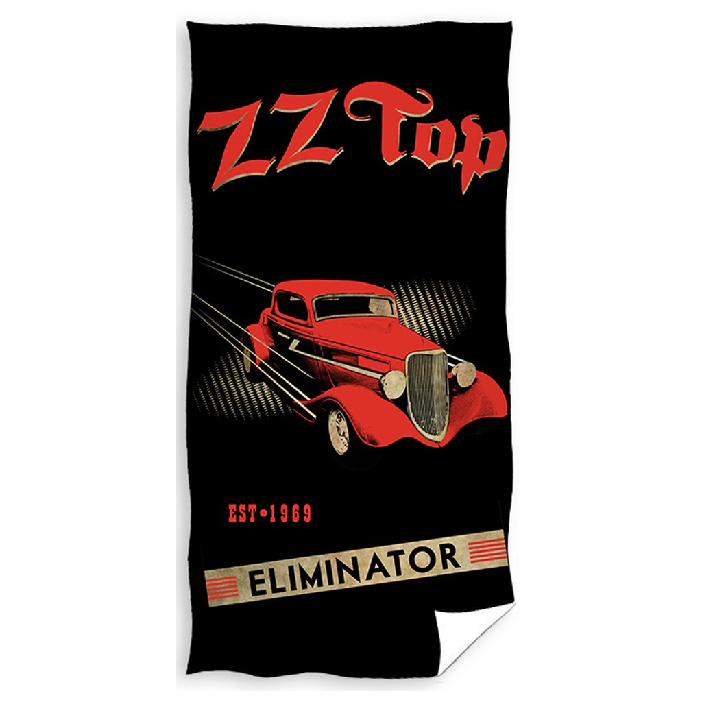 Ve spodní části osušky je také uvedený rok vzniku hardrockové skupiny ZZ Top, 1969 a v její horní části vede velký, červený název americké skupiny