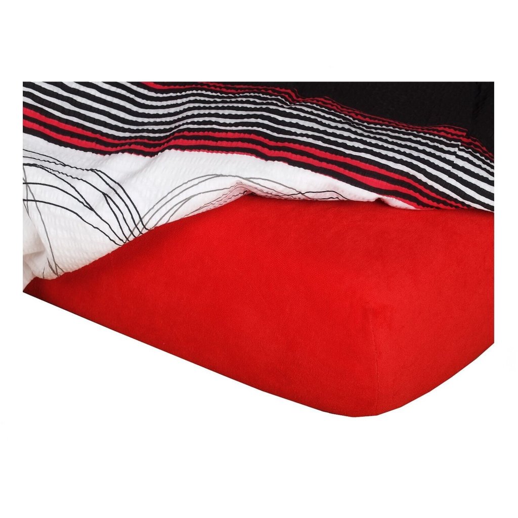 Červené napínací froté prostěradlo je vyrobeno z kvalitní směsi 80 % česané bavlny a 20 % polyesteru. Tento materiál je elastický, prodyšný, rozměrově stálý a velmi příjemný na dotek. Jemná froté smyčka zajišťuje měkkost a pohodlí při každodenním používání. Vhodné pro celoroční použití.