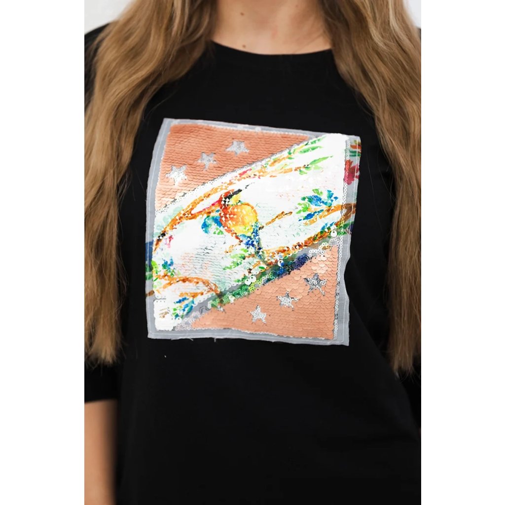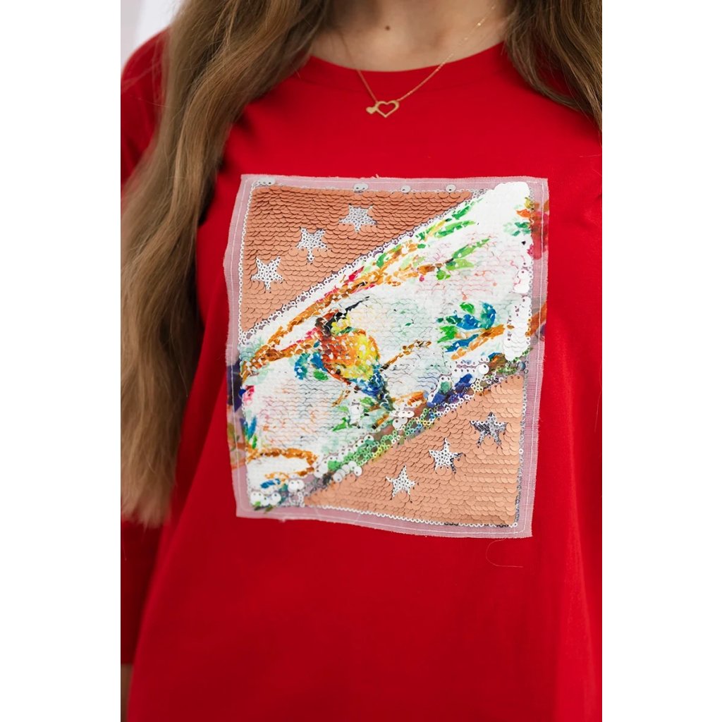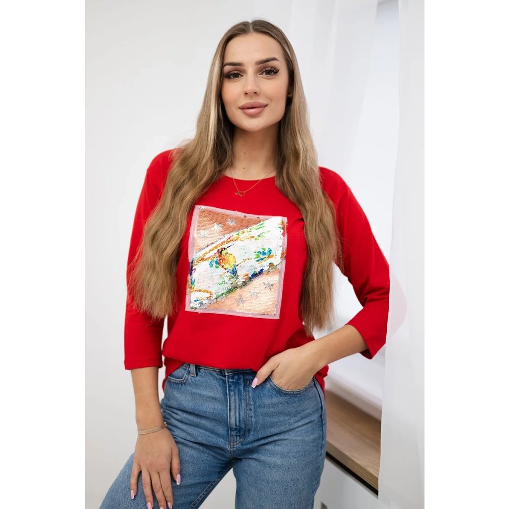 Představujeme vám módní halenku. Halenka má na přední straně flitrovanou grafiku. Ideální pro každodenní použití. Halenka je vyrobena z vysoce kvalitního materiálu. Velikost je univerzální a vyhovuje dámám, které nosí velikost M, L nebo XL.