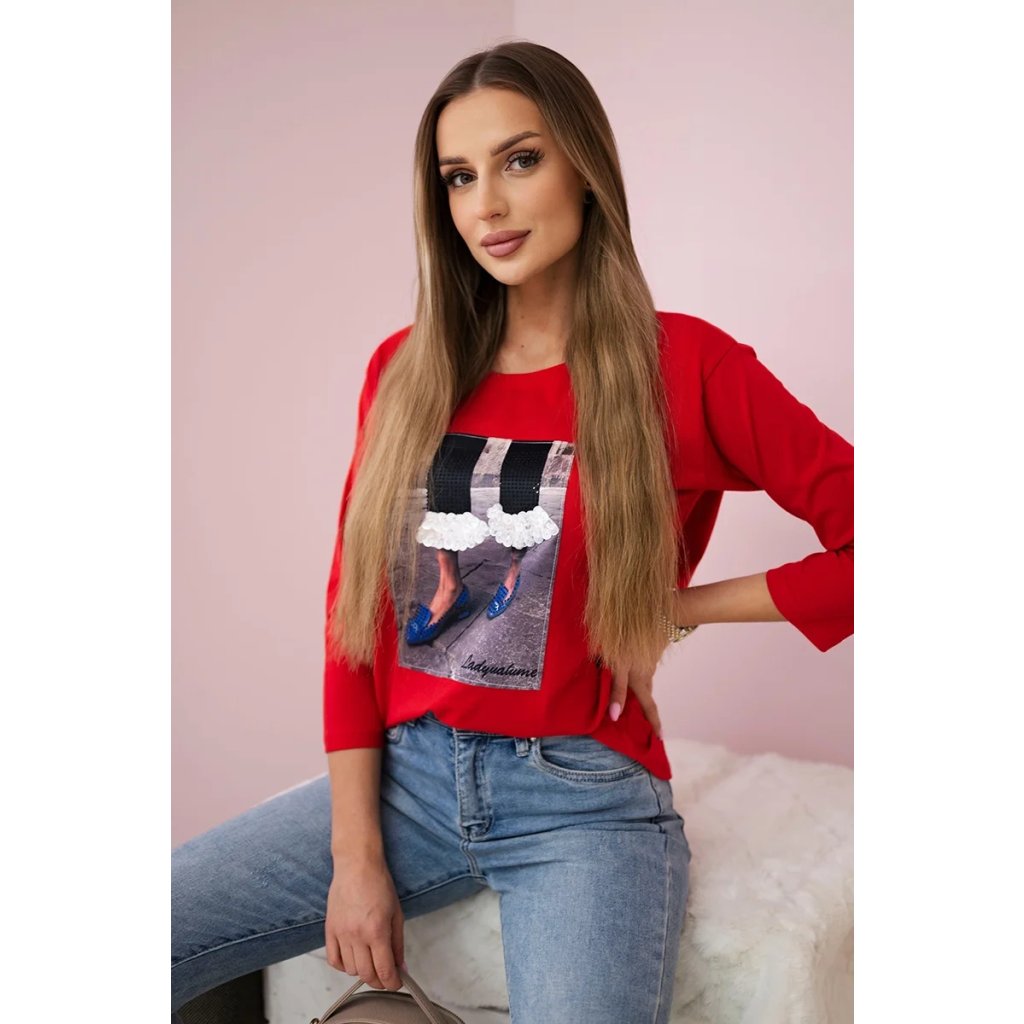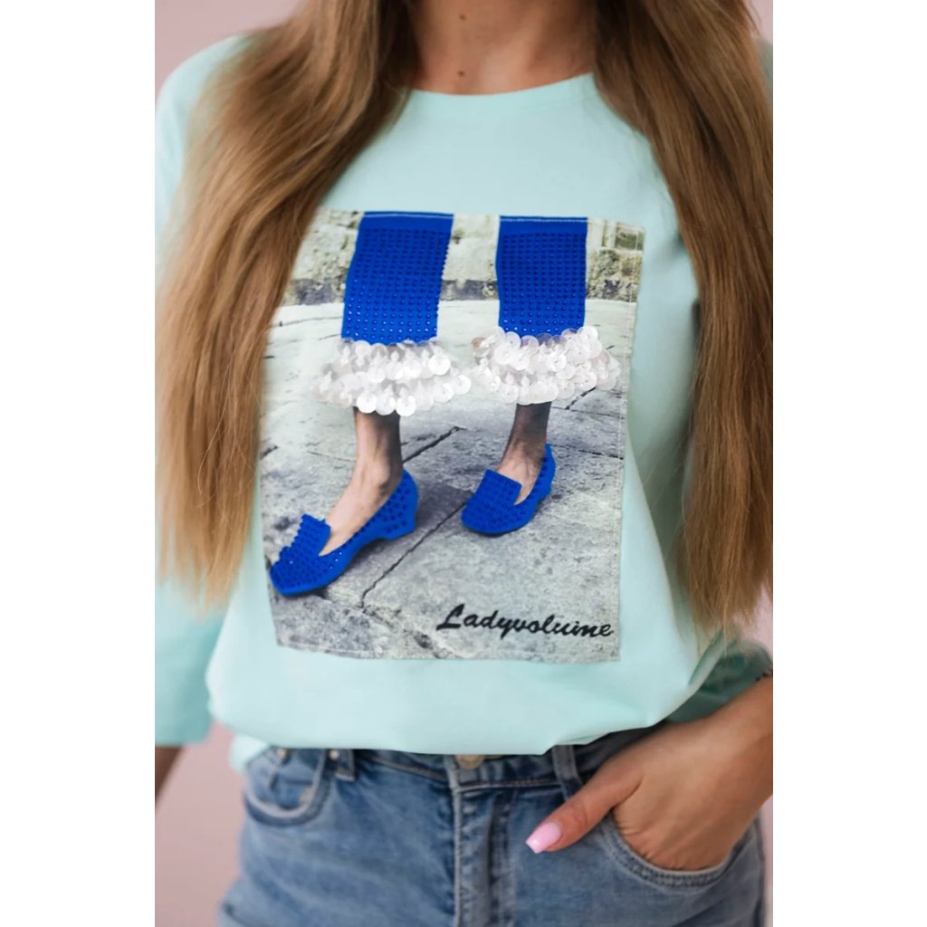Představujeme vám módní halenku. Halenka má našitou grafiku se zirkony. Tato halenka se vyznačuje módním designem a precizním zpracováním. Ve vašem šatníku rozhodně nesmí chybět. Halenka je vyrobena z vysoce kvalitního materiálu. Univerzální velikost je vhodná pro dámy, které nosí každodenní oblečení ve velikostech M, L nebo XL.