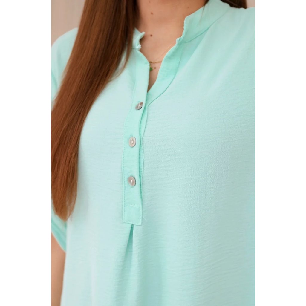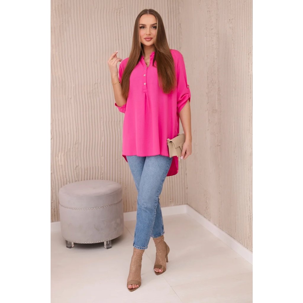 Objevte mimořádnou eleganci a pohodlí v prezentované halence s delšími zády, knoflíkovým výstřihem a ohrnutými rukávy, tato halenka nejen vypadá výjimečně stylově, ale poskytuje také bezkonkurenční funkčnost. Ciťte se sebevědomě a elegantně v halence, která podtrhne váš jedinečný styl. Díky delším zadním dílům vytvoříte jemné a módně nepravidelné proporce a knoflíkový výstřih vám umožní upravit si halenku podle vašich preferencí. Vyhrnuté rukávy dodávají halence lehkost a ležérní charakter, ideální pro různé příležitosti. Ať už se jedná o obchodní jednání nebo relaxační kávu s přáteli, naše halenka vám poskytne pohodlí a styl v jednom. Nenechte si ujít příležitost přidat do svého šatníku tuto jedinečnou halenku! Objevte eleganci, pohodlí a funkčnost v jednom a zdůrazněte svůj jedinečný styl ještě dnes. Velikost je univerzální a bude vhodná pro ženy, které nosí velikost S, M nebo L.