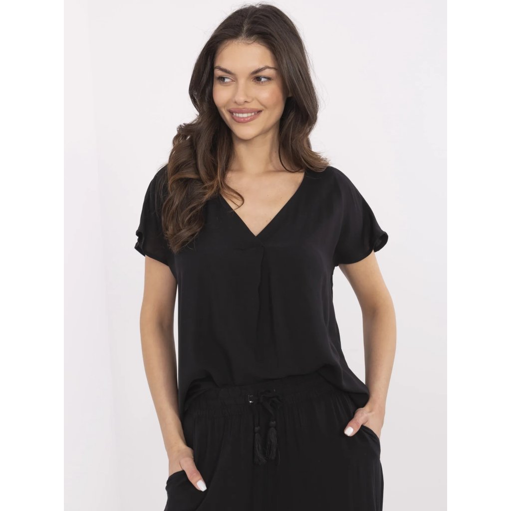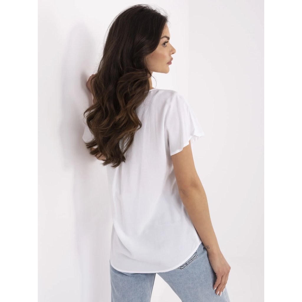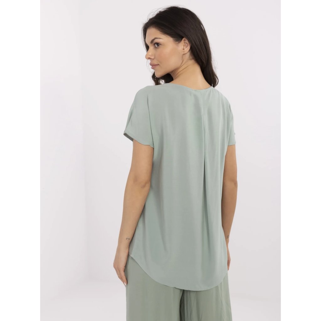 Míry halenky ve velikosti S, v plochém stavu: podpaží - 53 cm, délka rukávu - 22 cm, šířka boků - 56 cm, celková délka - 60 cm (vpředu), celková délka - 67 cm (vzadu).