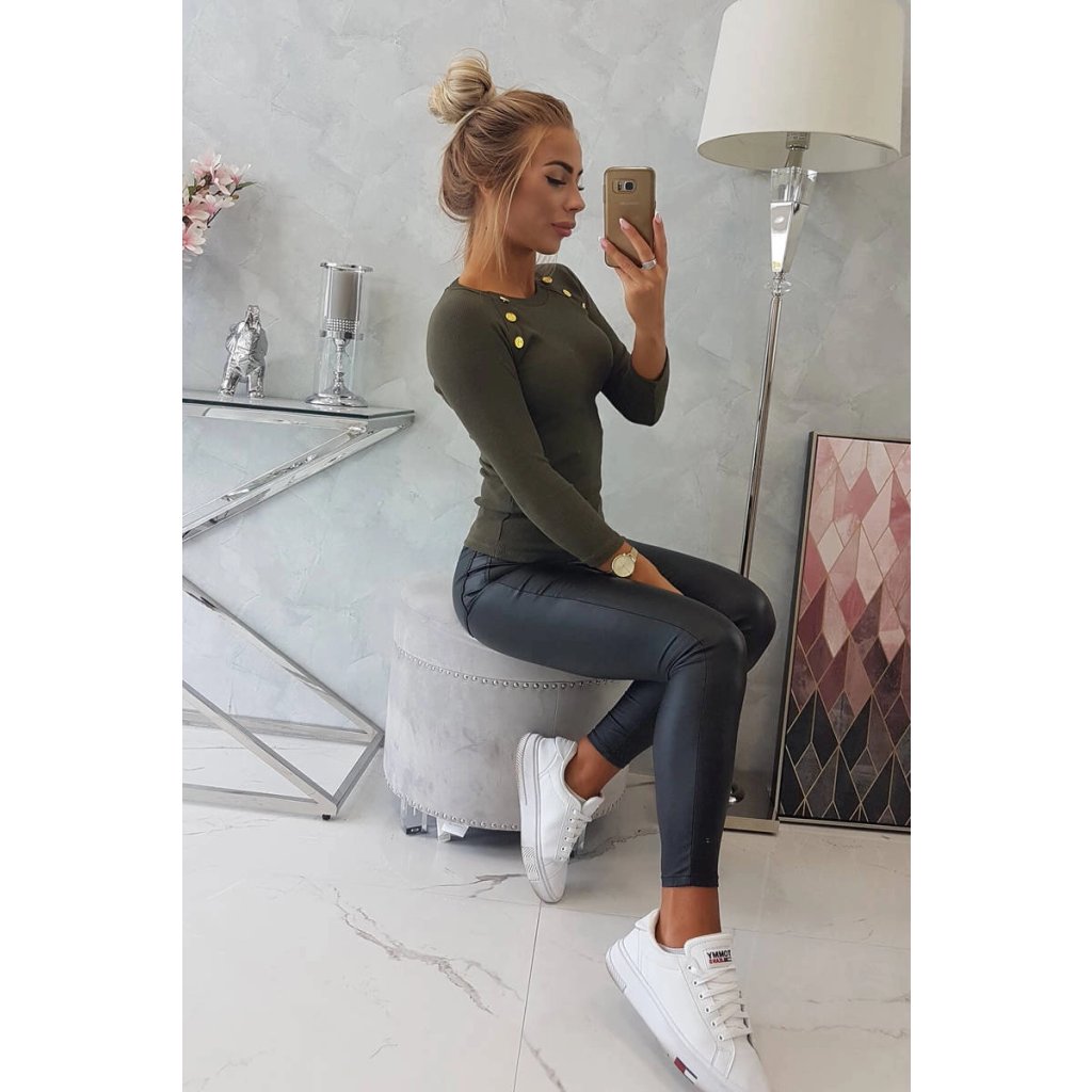 Představujeme vám módní halenku. Tato přiléhavá halenka má vpředu dvě řady ozdobných knoflíků. Má dlouhé rukávy a žebrovaný materiál. Perfektní volba pro všechny ženy. Halenka je vyrobena z vysoce kvalitní látky. Univerzální velikost a padne ženám, které nosí velikosti S, M nebo L.