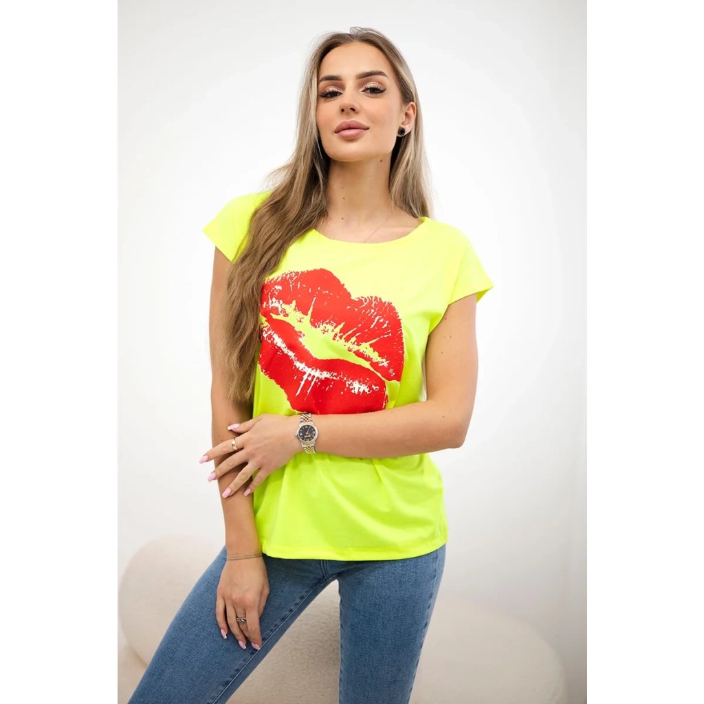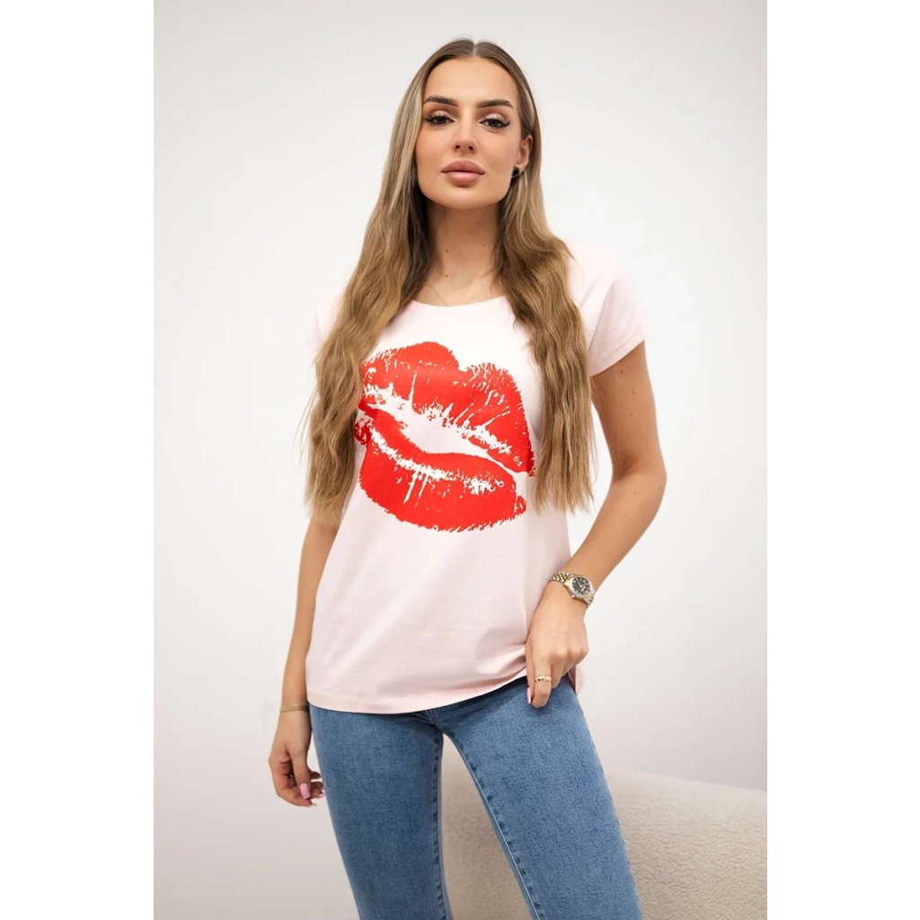 Představujeme vám módní halenku. Halenka s potiskem rtů. Halenka s krátkým rukávem. Super grafika na tričku. Halenka ideální na léto s šortkami. Halenka je vyrobena z vysoce kvalitního materiálu. Velikost je univerzální a vyhovuje dámám, které nosí velikost S, M nebo L.