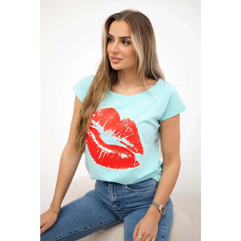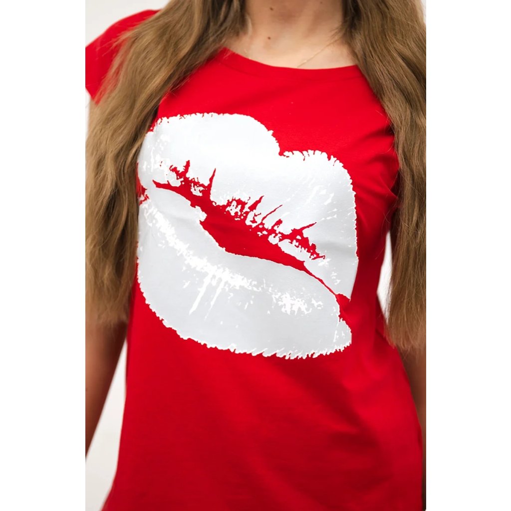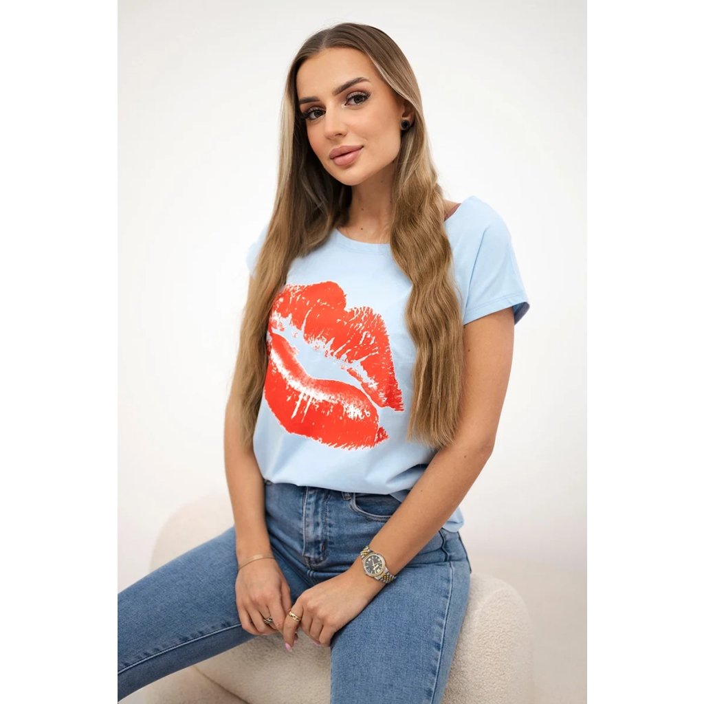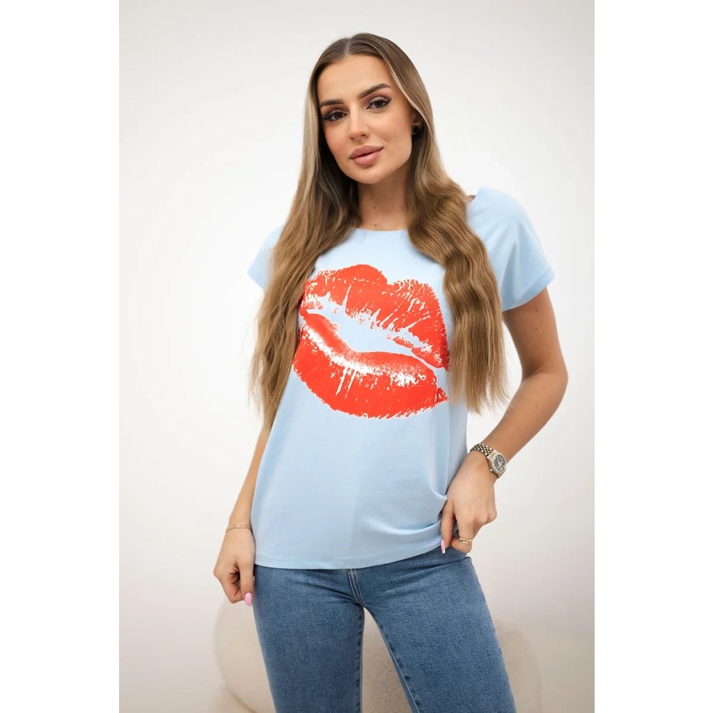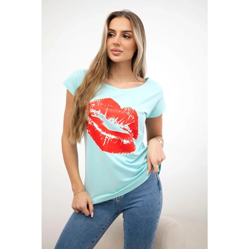 Představujeme vám módní halenku. Halenka s potiskem rtů. Halenka s krátkým rukávem. Super grafika na tričku. Halenka ideální na léto s šortkami. Halenka je vyrobena z vysoce kvalitního materiálu. Velikost je univerzální a vyhovuje dámám, které nosí velikost S, M nebo L.