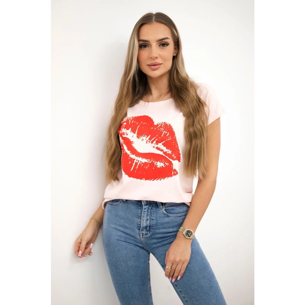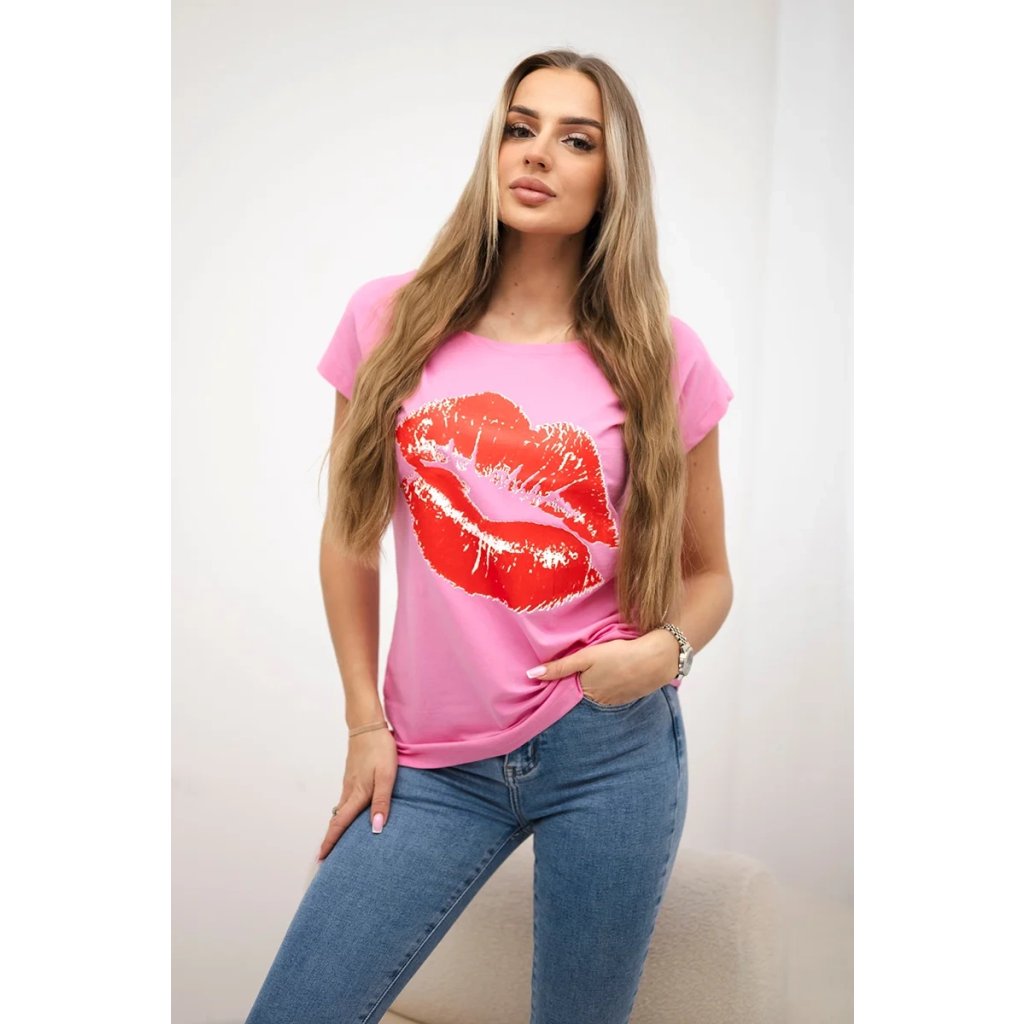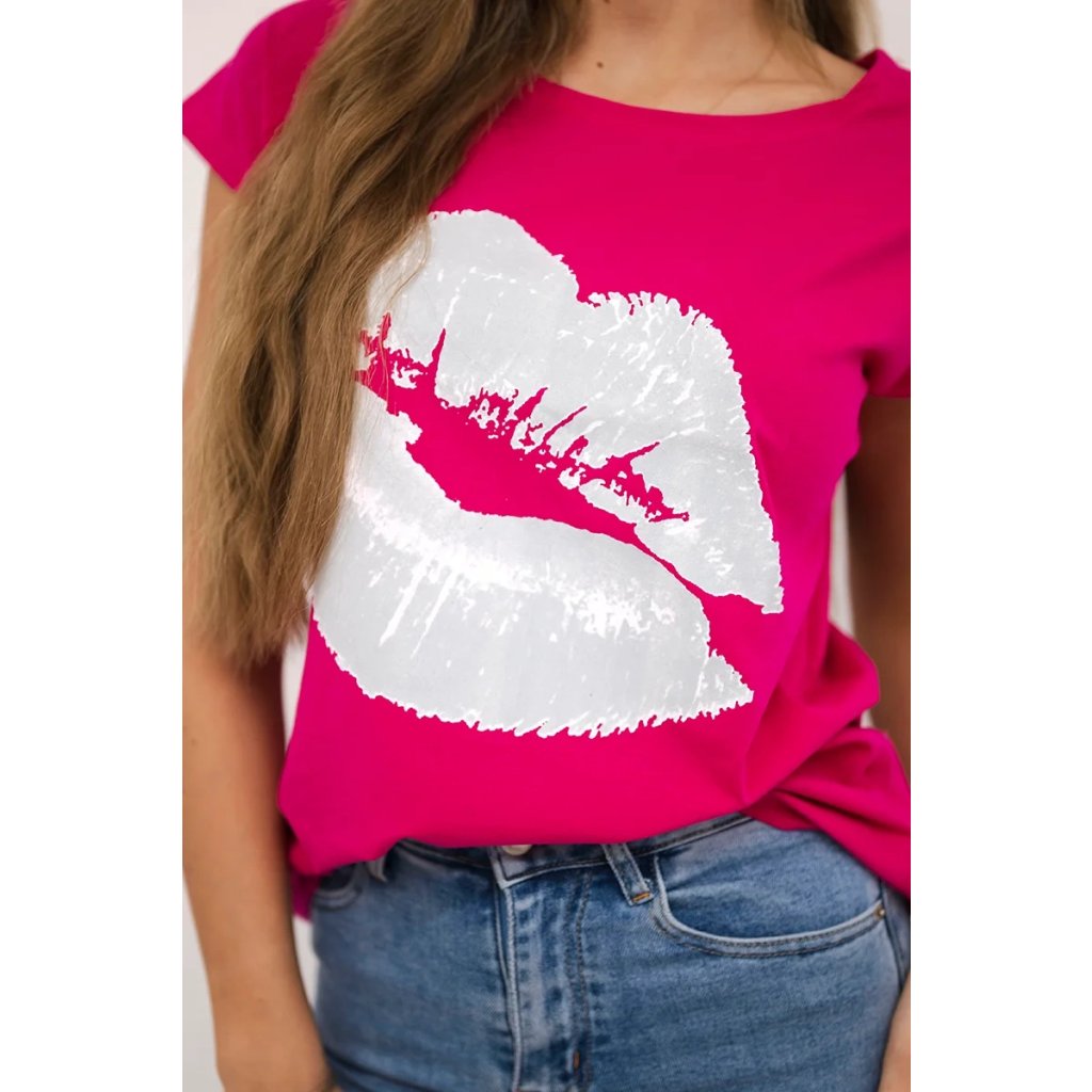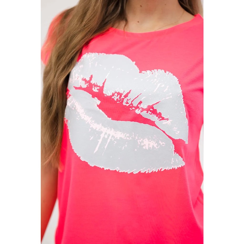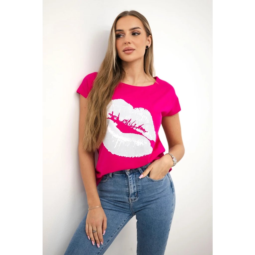 Představujeme vám módní halenku. Halenka s potiskem rtů. Halenka s krátkým rukávem. Super grafika na tričku. Halenka ideální na léto s šortkami. Halenka je vyrobena z vysoce kvalitního materiálu. Velikost je univerzální a vyhovuje dámám, které nosí velikost S, M nebo L.