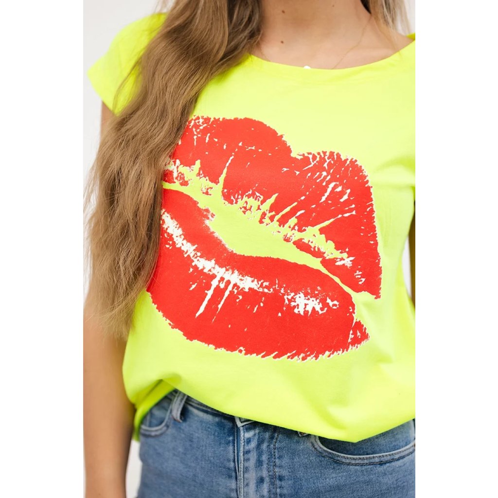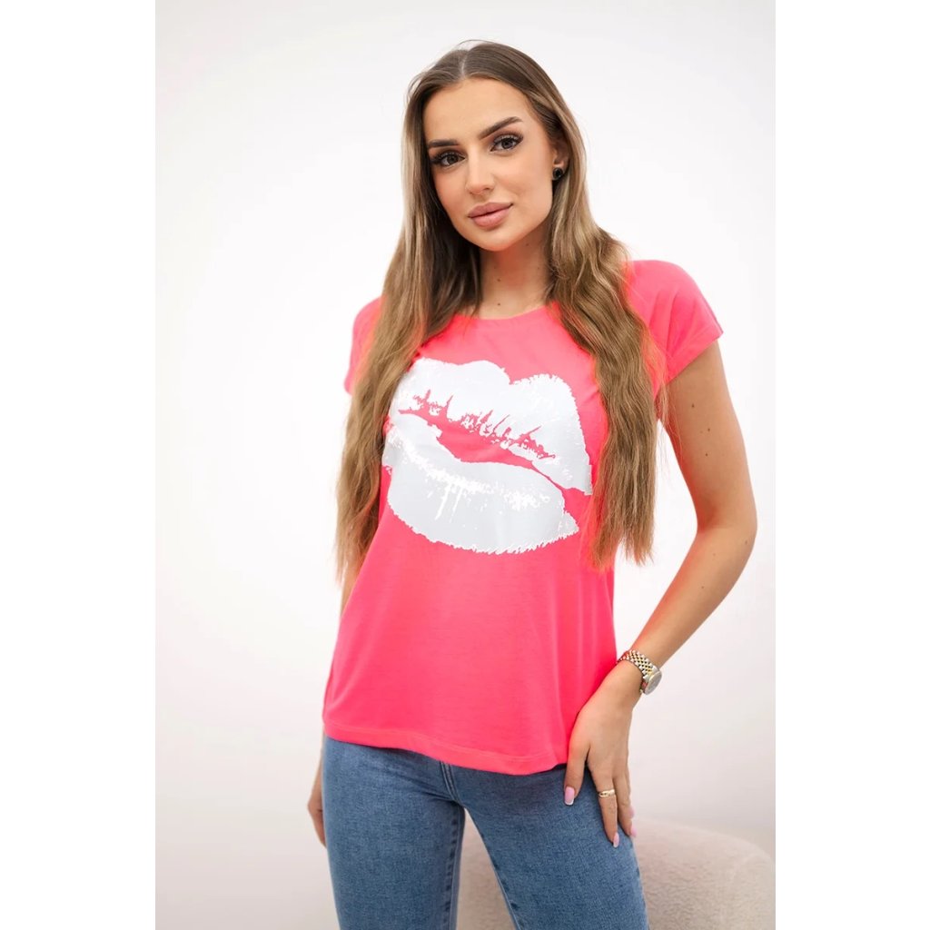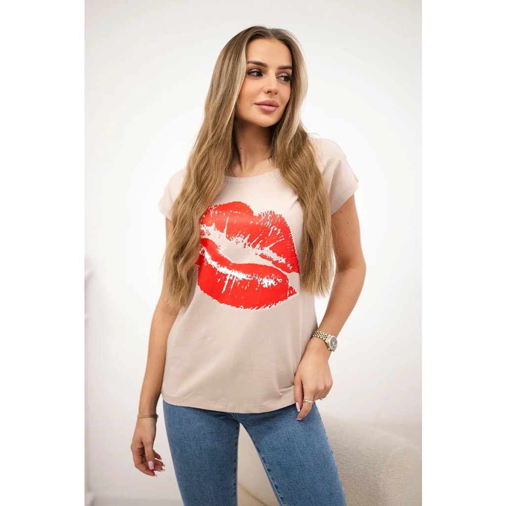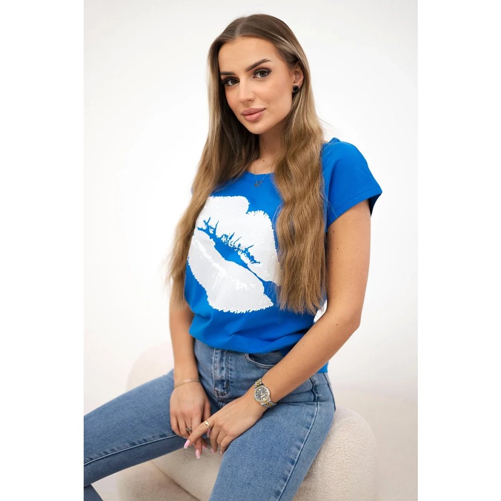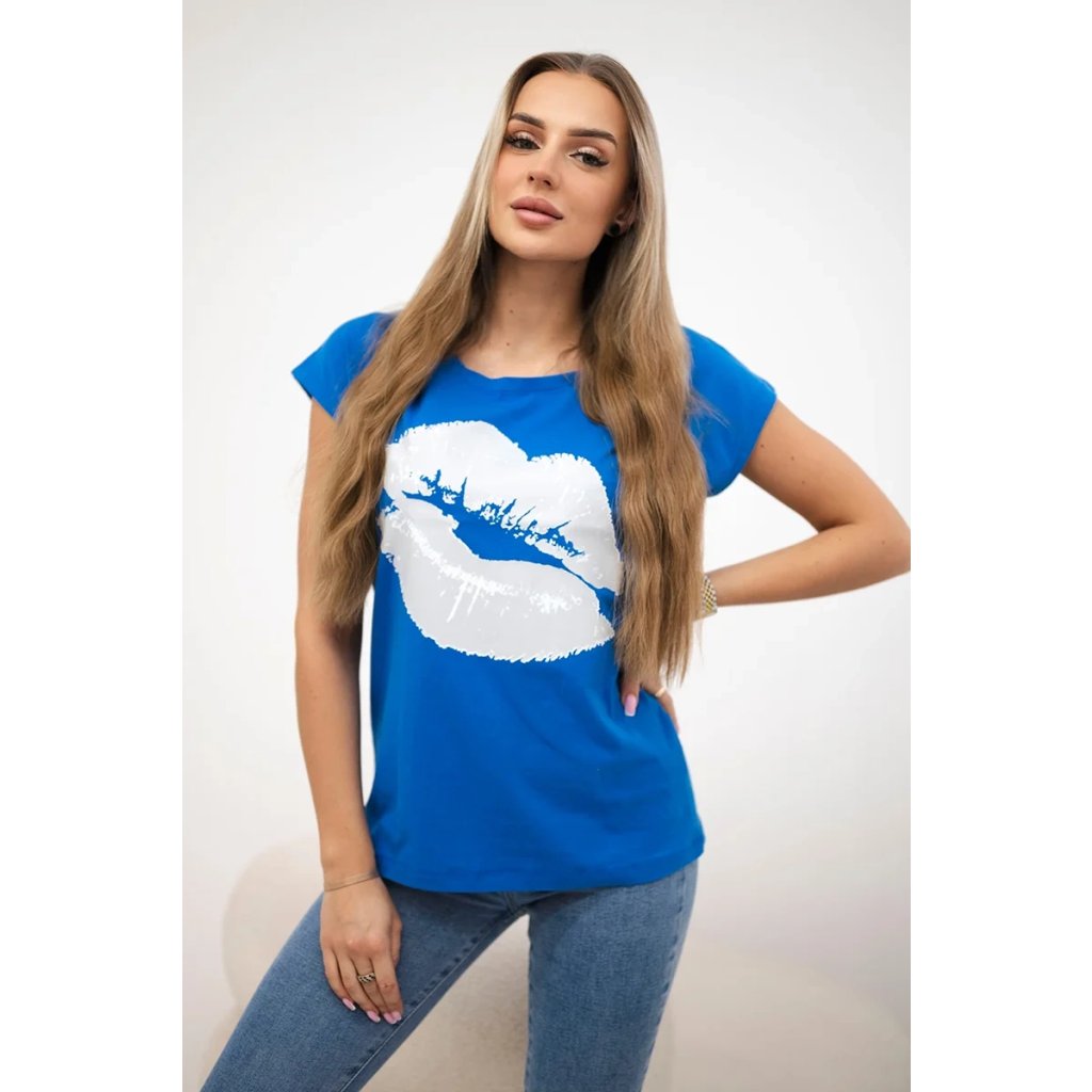 Představujeme vám módní halenku. Halenka s potiskem rtů. Halenka s krátkým rukávem. Super grafika na tričku. Halenka ideální na léto s šortkami. Halenka je vyrobena z vysoce kvalitního materiálu. Velikost je univerzální a vyhovuje dámám, které nosí velikost S, M nebo L.