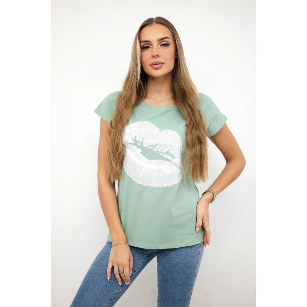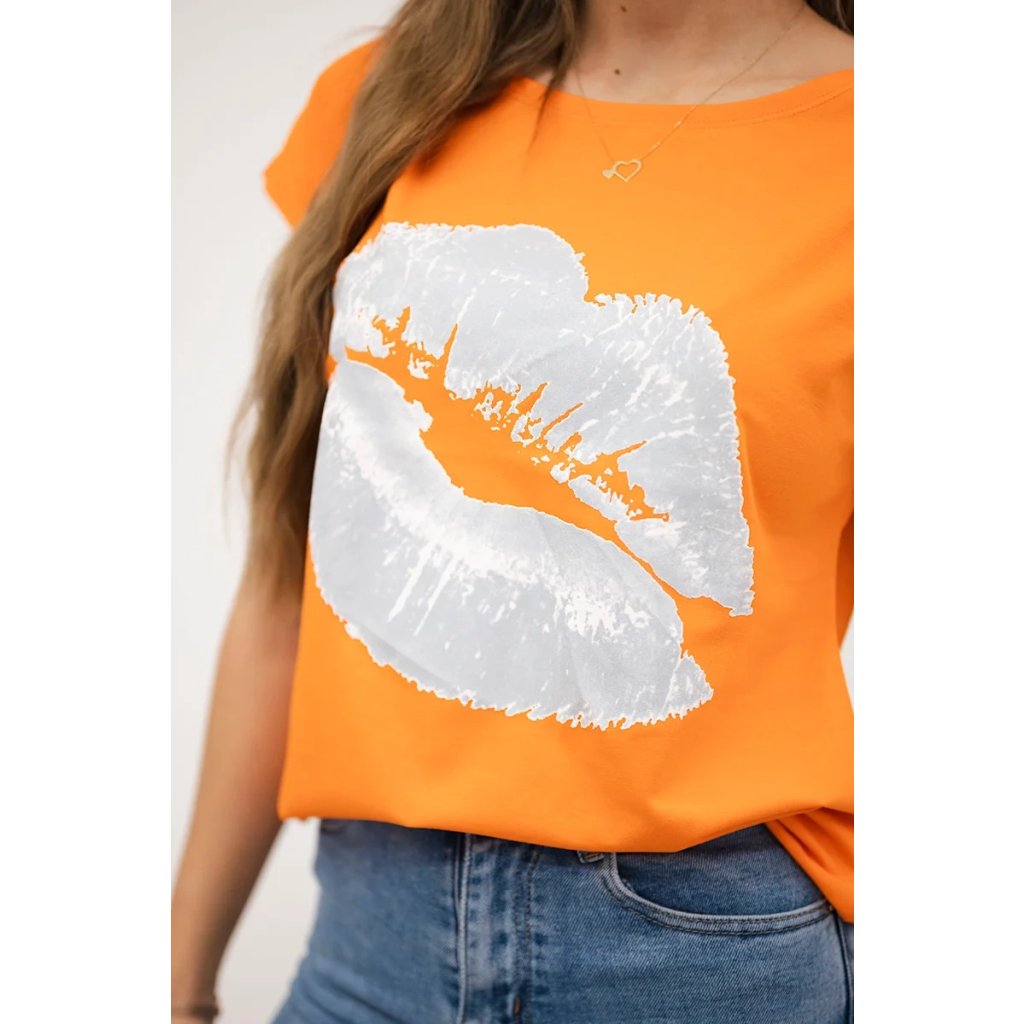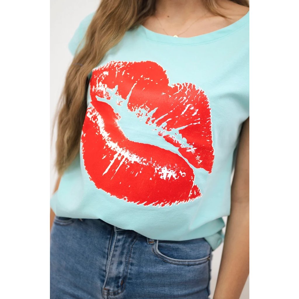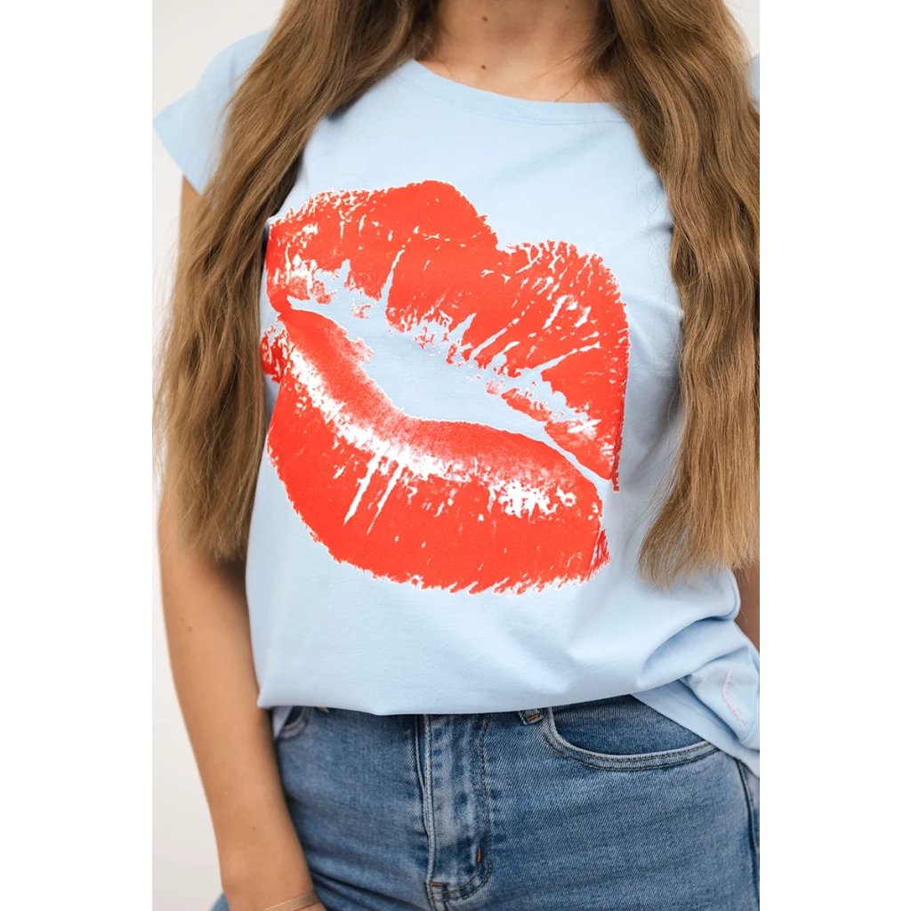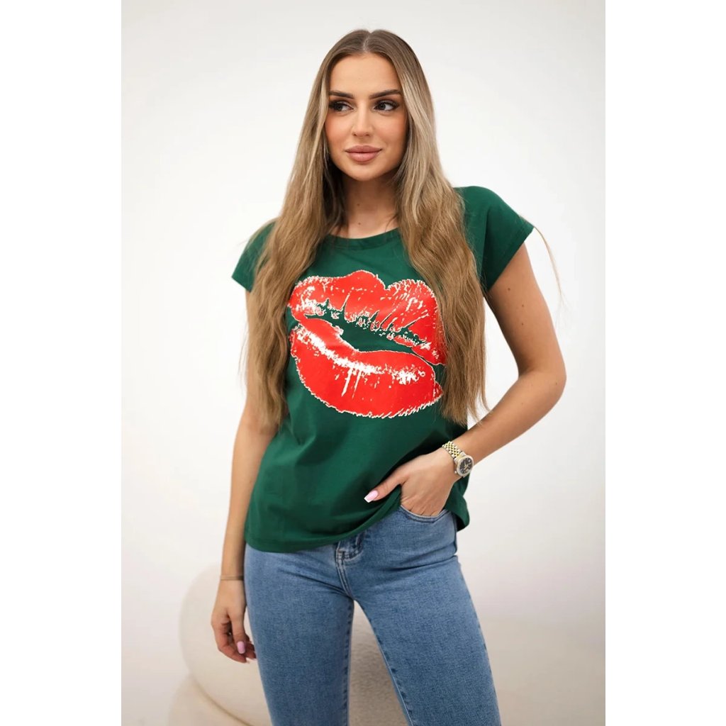 Představujeme vám módní halenku. Halenka s potiskem rtů. Halenka s krátkým rukávem. Super grafika na tričku. Halenka ideální na léto s šortkami. Halenka je vyrobena z vysoce kvalitního materiálu. Velikost je univerzální a vyhovuje dámám, které nosí velikost S, M nebo L.