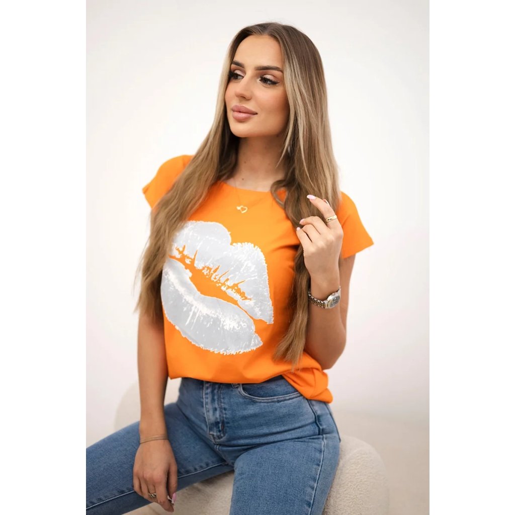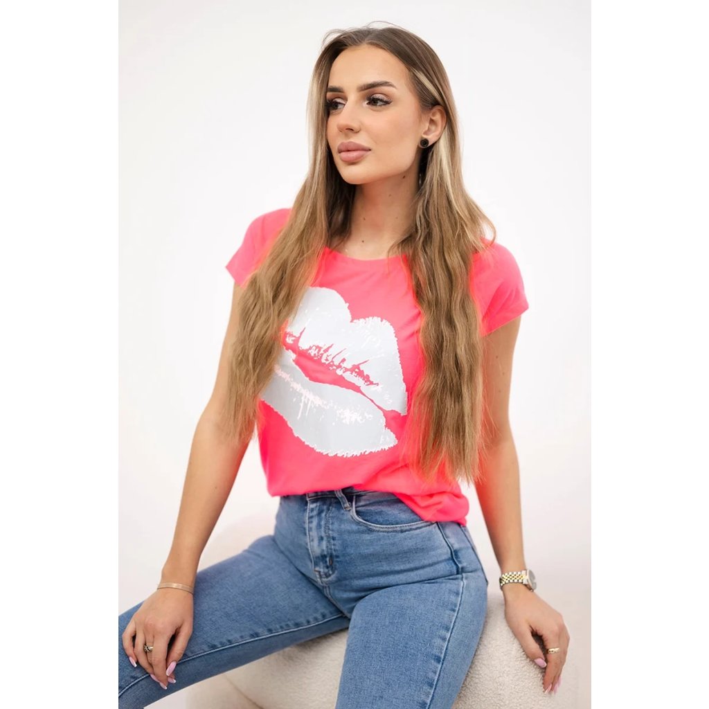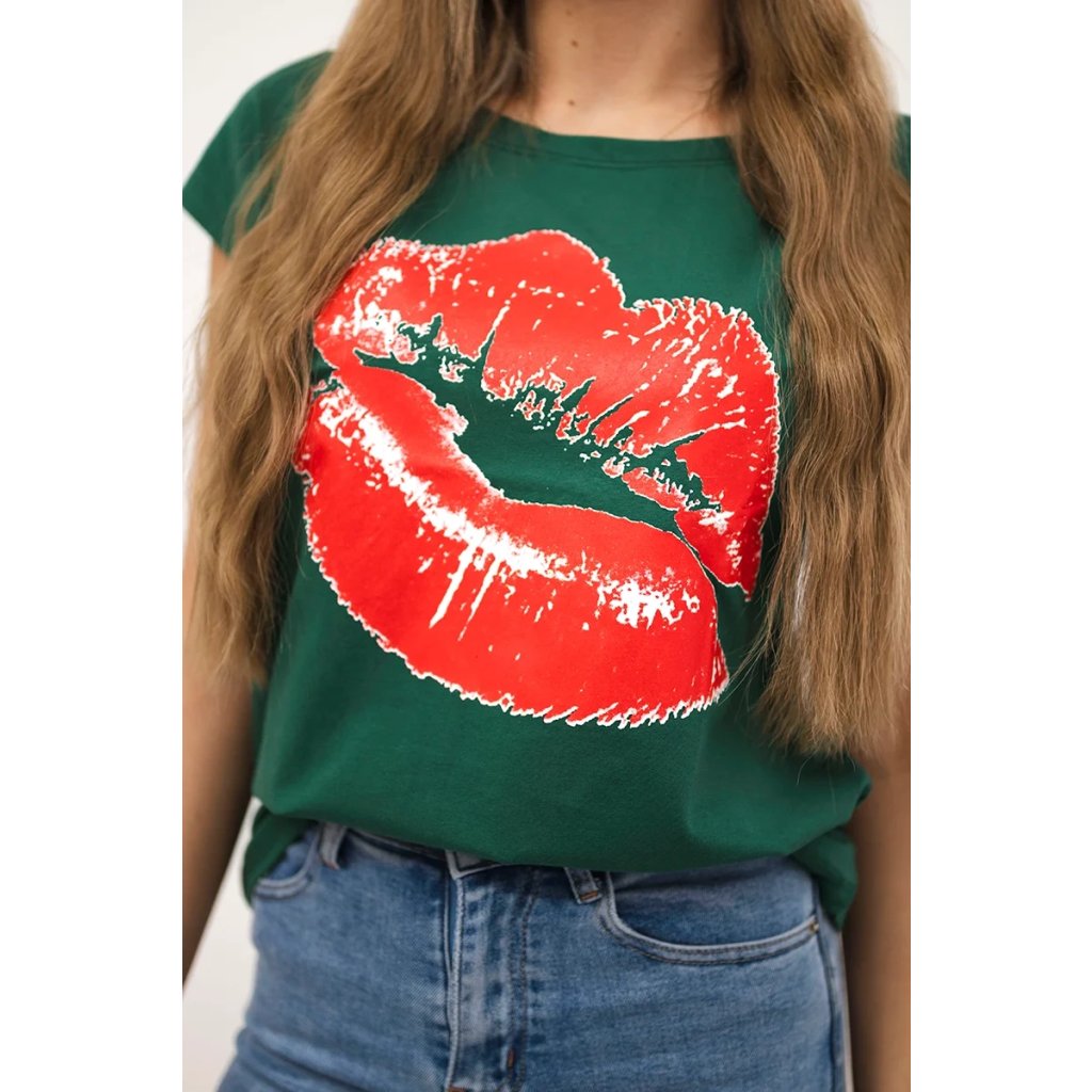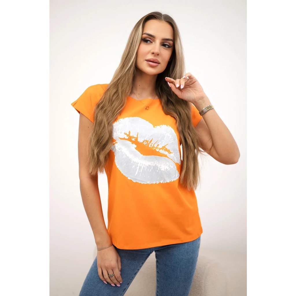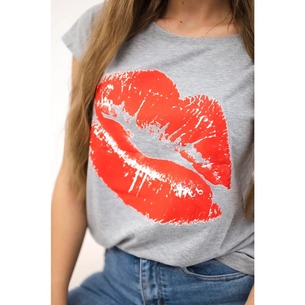 Představujeme vám módní halenku. Halenka s potiskem rtů. Halenka s krátkým rukávem. Super grafika na tričku. Halenka ideální na léto s šortkami. Halenka je vyrobena z vysoce kvalitního materiálu. Velikost je univerzální a vyhovuje dámám, které nosí velikost S, M nebo L.