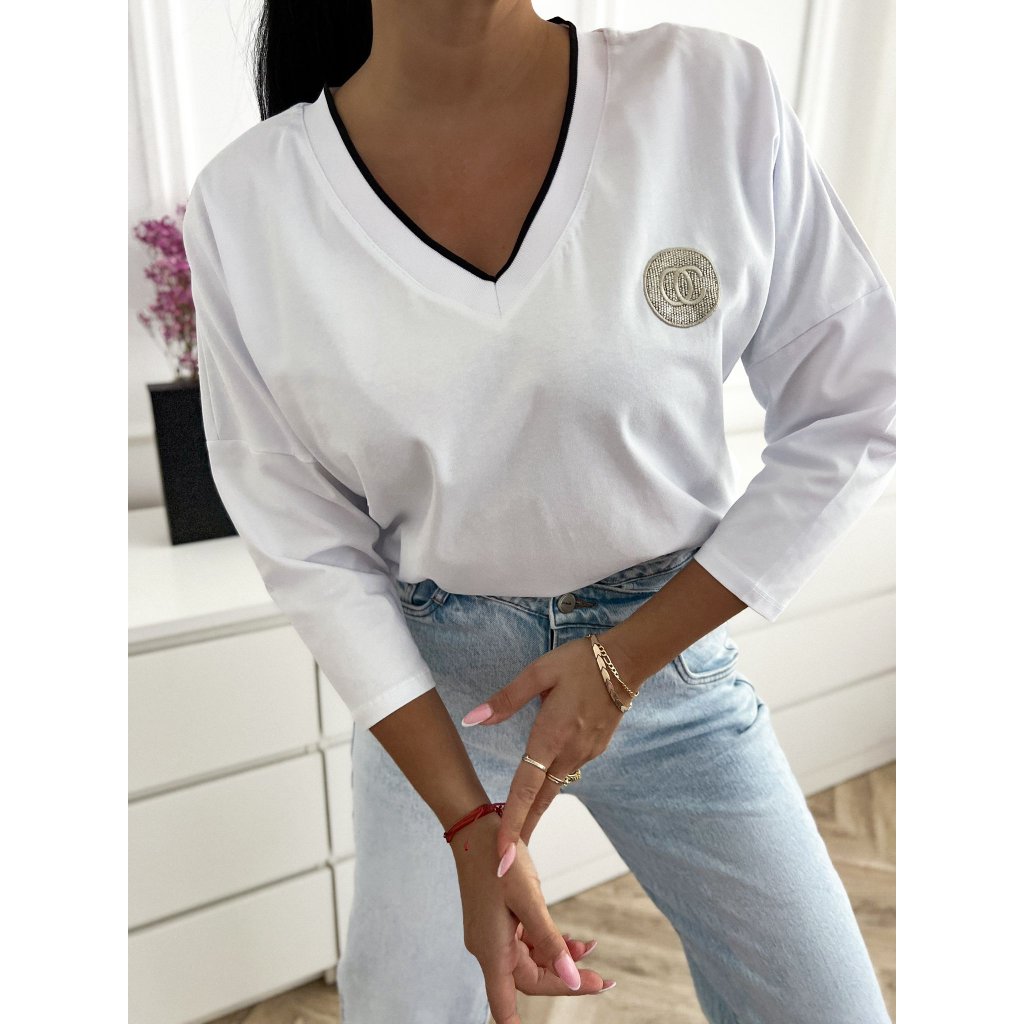 Představujeme vám pohodlnou halenku. Halenka má výstřih do V. Halenka je vyrobena z vysoce kvalitního materiálu. Velikost je univerzální a vyhovuje dámám, které nosí velikost S, M a L Triko má 3/4 rukáv