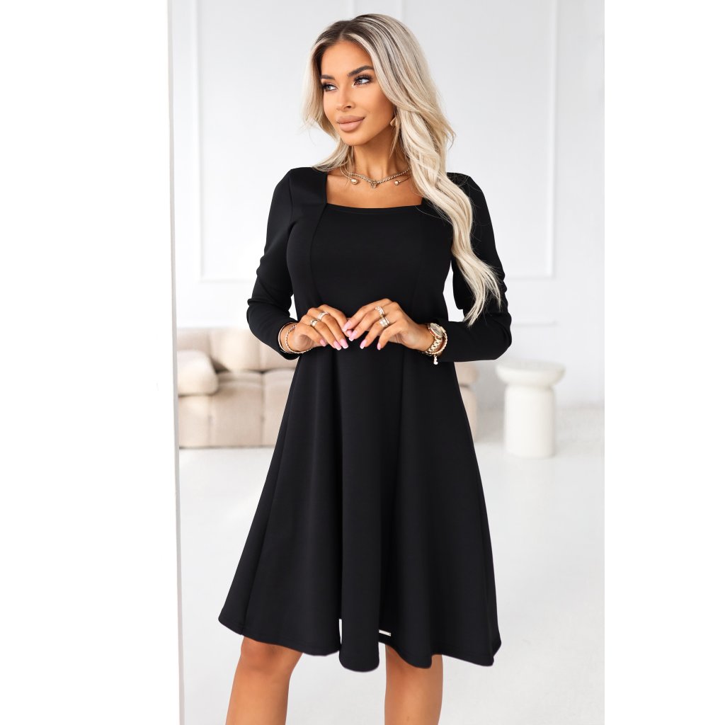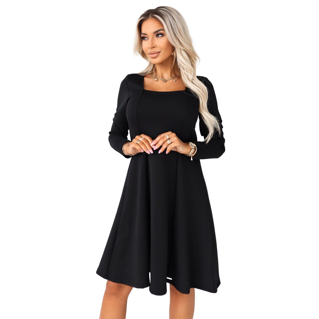 Černé rozšířené midi šaty s čtvercovým výstřihem