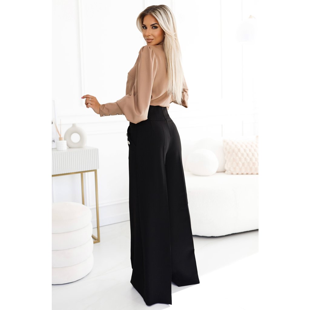 Business halenka Numoco je elegantní návrh, ideální pro kancelářský styl. Vyrobeno v karamelové barvě, vyniká dlouhými volnými rukávy zakončenými širokými manžetami zdobenými čtyřmi knoflíky. Zavazování pod krkem s možností zavázání na mašli dodává halence jemný půvab a třídu. Je to perfektní kombinace stylu a pohodlí, ideální pro formální schůzky a každodenní práci. Polský výrobek.