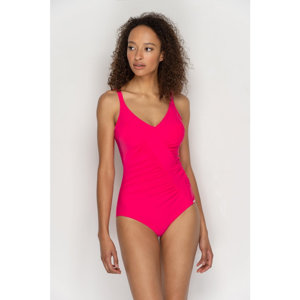 Přinášíme vám inovovaný střih legendárních plavek se skrytou bezešvou výztuží. Tento střih jednodílných plavek je oblíbený napříč generacemi. Je vhodný na plavání i volný čas. Plavky jsou jednodílné, na předním díle mají lištu s řasením, která nejen skvěle vypadá, ale také schová vše, co nechcete, aby bylo vidět...