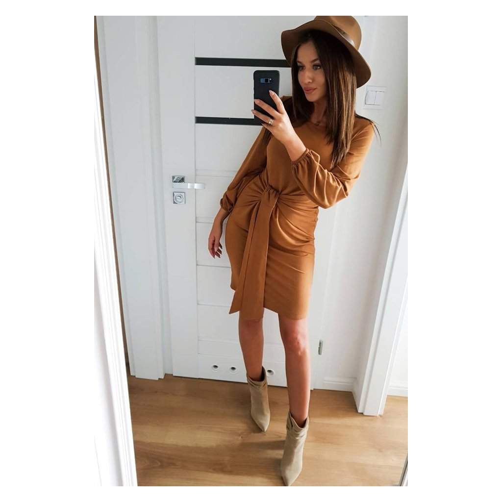 Jenny - pohodlné ležérní šaty - svázané v pase - karamelová barva. Polský produkt. Vyrobeno z příjemného na dotek pružného materiálu - vysoce kvalitní polská viskózová mikina. Numoco.