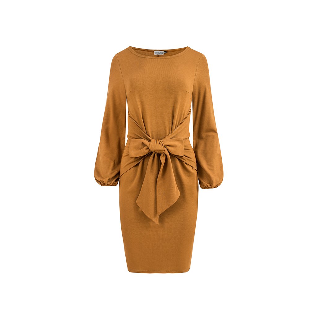 JENNY Komfortní šaty s vázáním v pase - karamel 275-1