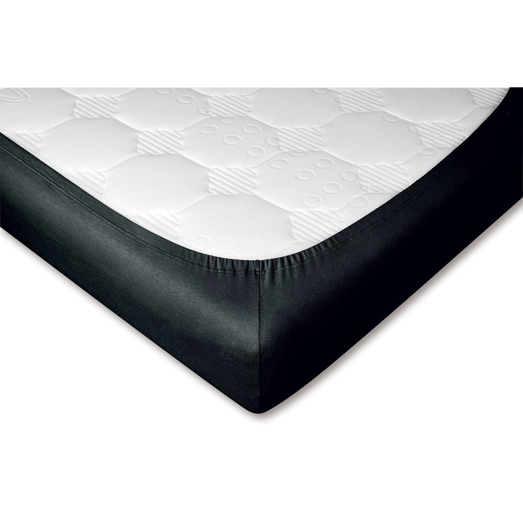 Napínací jersey prostěradlo v černé barvě je ušito z kvalitní směsi 95 % česané bavlny a 5 % elastanu. Tato kombinace zajišťuje vysokou pružnost, rozměrovou stálost a dokonalé přilnutí k matraci. Hladký jersey materiál je příjemný na dotek a ideální pro celoroční použití.