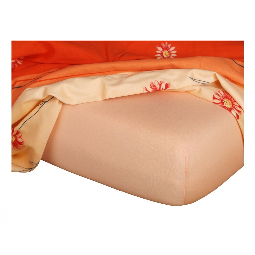 Napínací jersey prostěradlo v meruňkové barvě je ušito z kvalitní směsi 95 % česané bavlny a 5 % elastanu. Tato kombinace zajišťuje vysokou pružnost, rozměrovou stálost a dokonalé přilnutí k matraci. Hladký jersey materiál je příjemný na dotek a ideální pro celoroční použití.