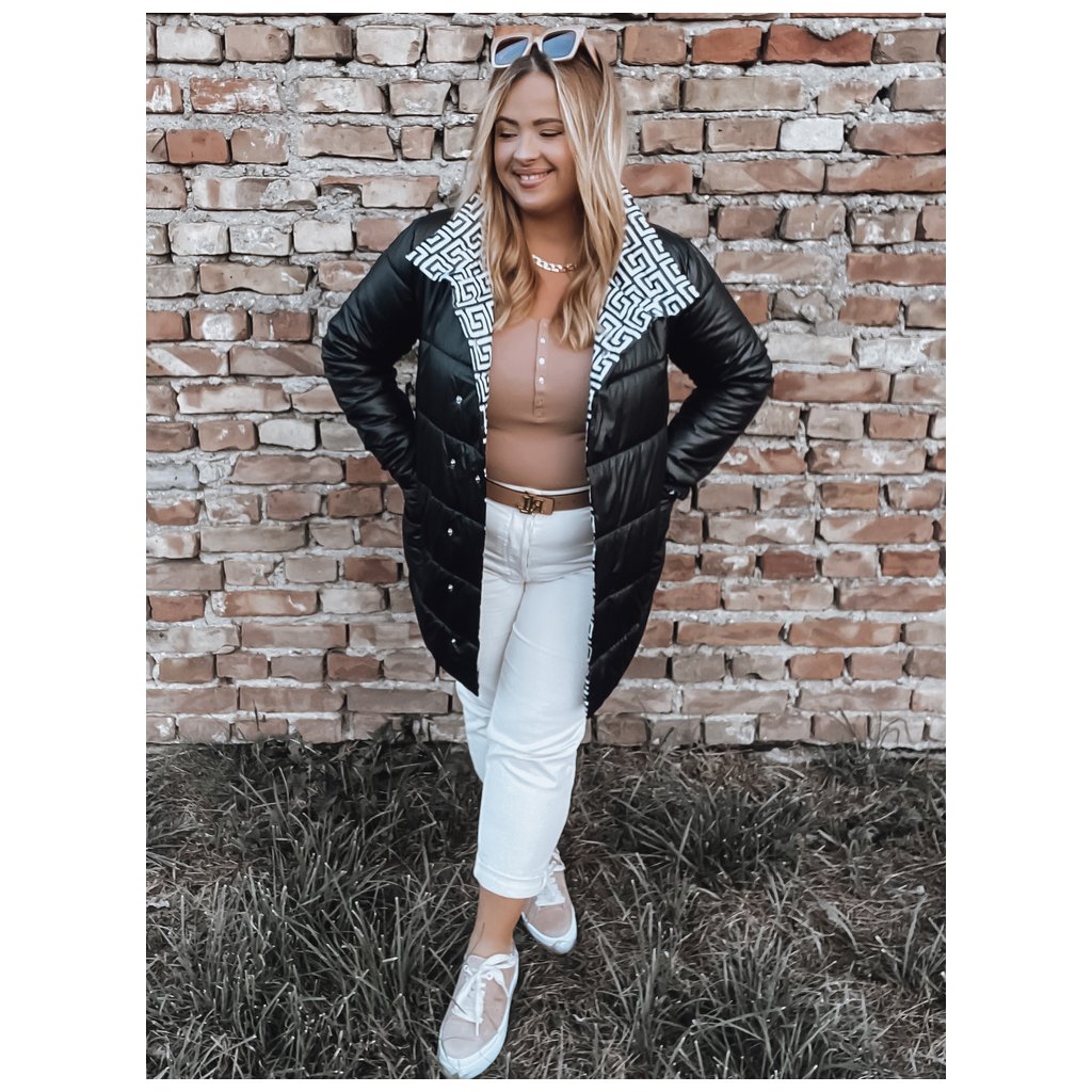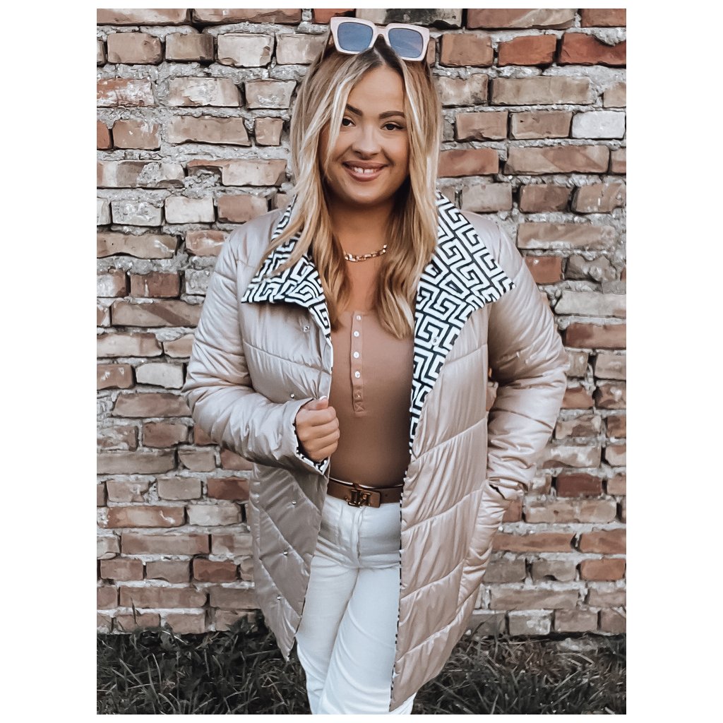 Prošívaná bunda je perfektní volbou na přechodnou sezónu! Model se zapíná na druky, má velké kapsy a módní potisk. Je skvělým doplňkem každodenních stylizací, které se bezesporu fenomenálně prezentují a získají jedinečný charakter.