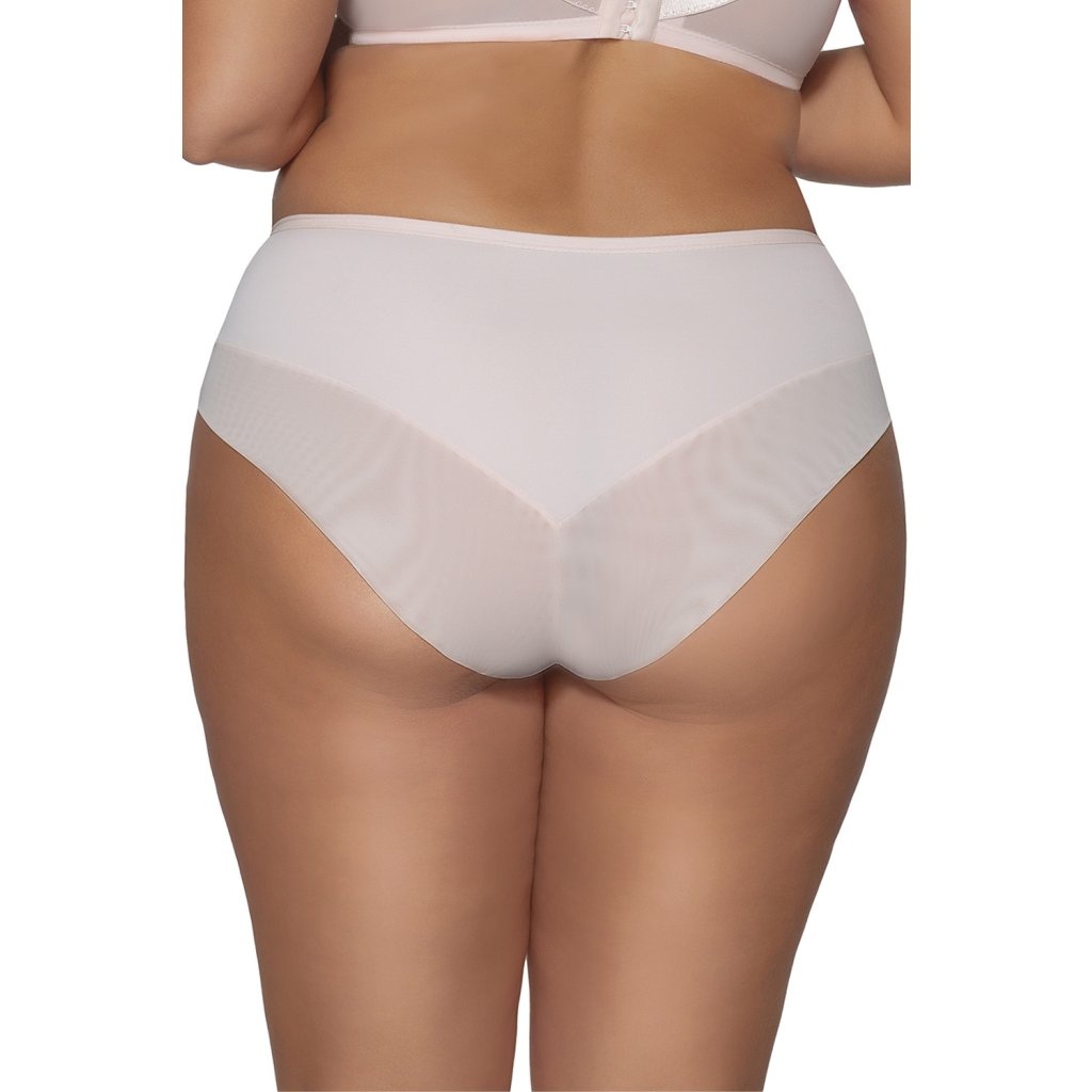 Dámské kalhotky růžové barvy.- síťovaná vsadka zdobená krajkou