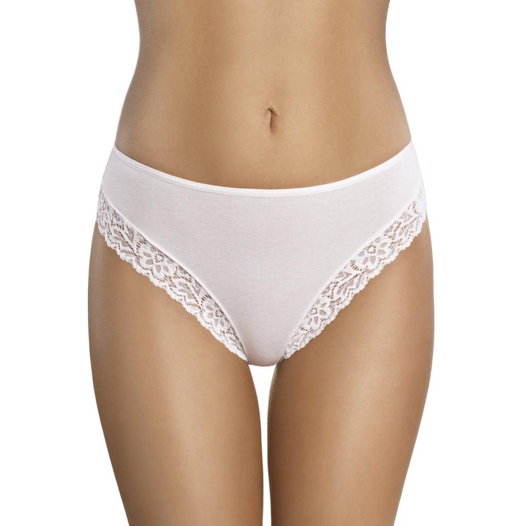 Elegantní dámské kalhotky Ganidar 41 klasického střihu s vyšším pasem lemované krajkou. Dostupné jsou v bílé a černé barvě.Složení 95% bavlna a 5% elastan