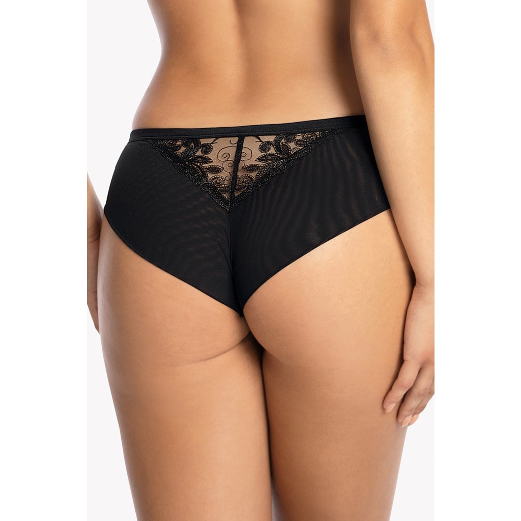 Střih kalhotek: klasickéDámské kalhotky typu brazilky- jemná síťka s květovaným potiskem- krásné výšivky- hladká zadní strana, dvojtá, jemně zdobenáSložení: 60% Polyamid, 20% Polyester, 15% Elastan, 5% BavlnaDoplňkové parametry