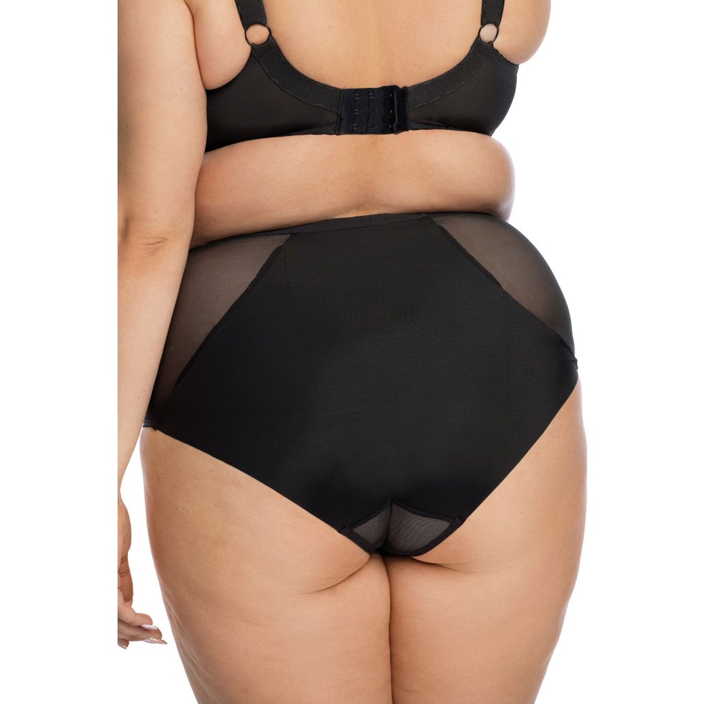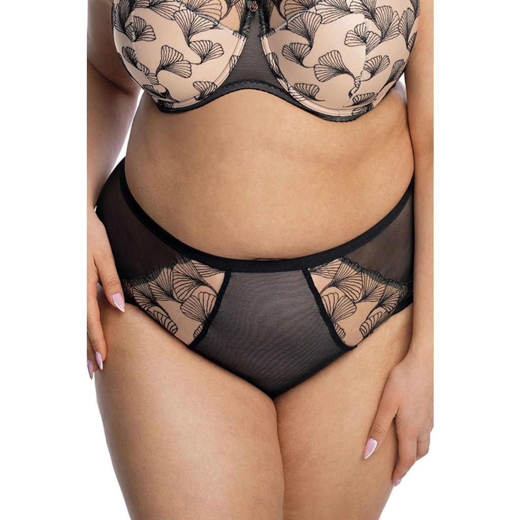 Elegantní dámské kalhotky- klasický střih- přední strana zdobená jemnou síťovinou s květinovou výšivkou- zpět hladkýSložení: 60% polyamid, 20% polyester, 15% elastan, 5% bavlna.Doplňkové parametry