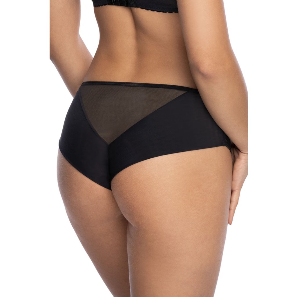 Dámské kalhotky- brazilského typu- přední strana zdobená vyšívanými tylovými vsadkami- tylová zadní stranaSložení: 60% polyamid, 20% polyester, 15% elastan, 5% bavlna.