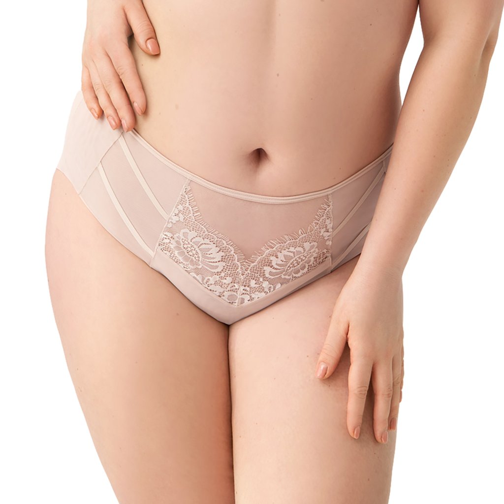 Elegantní dámské kalhotky:- plnějšího střihu- vyrobené z siťoviny- ve přední části ozdobené vsadkami z jemné krajky- zadní díl z siťovinySložení: 90 % polyamid, 7 % elastan, 3 % polyesterDoplňkové parametry